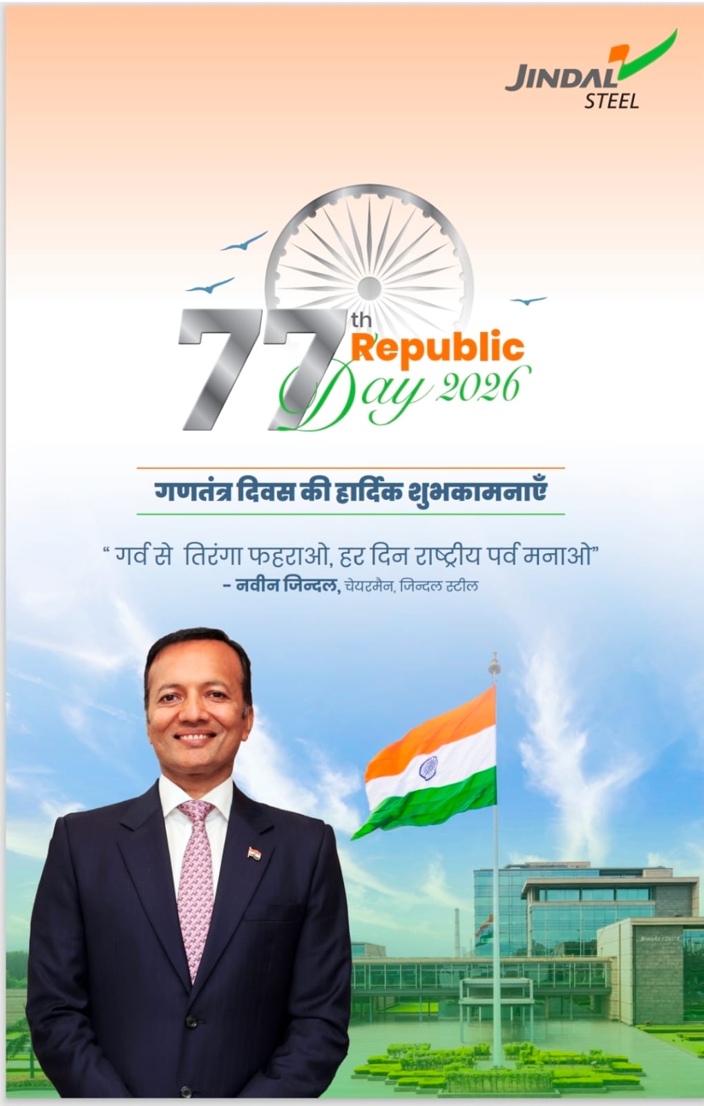 जिंदल पावर लिमिटेड तमनार में 77वाॅ गणतंत्र पर्व का भव्य आयोजन…स्वच्छ पर्यावरण, सुरक्षा मानकों का बेहतर अनुशरण के साथ ऊर्जा निर्माणः पीके मिश्रा