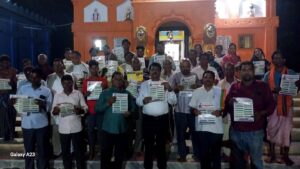 लगभग 50 योजनाओं को लेकर बनाए गए प्रगति सोपान का कांग्रेस कार्यालय रायगढ़, पूर्वांचल के ग्राम कुकुर्दा और पुसौर नगर पंचायत क्षेत्र तथा सरिया में पार्टी के नेताओं और कांग्रेस कार्यकर्ताओं के बीच विमोचन किया गया। इस अवसर पर रायगढ़ जिला कांग्रेस कमेटी के शहर अध्यक्ष ब्लॉक अध्यक्ष महापौर नगर निगम के पार्षद गण कांग्रेस के वरिष्ठ नेता गण और रायगढ़ के कई वरिष्ठ पत्रकार भी मौजूद रहे। रायगढ़ कांग्रेस मुख्यालय में प्रगति सोपान की विमोचन के बाद शंकर लाल अग्रवाल के द्वारा रायगढ़ विधानसभा क्षेत्र के पूर्वांचल क्षेत्र में ग्राम पंचायत को कुकुर्दा के पंचायत भवन में क्षेत्र के सैकड़ों कार्यकर्ताओं के उपस्थिति में प्रचार पुस्तिका प्रगति सोपान का विमोचन किया गया। इस अवसर पर अलग-अलग क्षेत्र से आए कार्यकर्ताओं ने उनका जोरदार स्वागत किया तथा एक साथ सैकड़ो की तादाद में कार्यकर्ताओं ने सरकार की योजनाओं को जन-जन तक पहुंचाने का संकल्प लिया है। इसके बाद शंकर लाल अग्रवाल का काफिला जन संवाद रथ के साथ सरिया पहुंचा वहां के रामचंडी मंदिर प्रांगण में विधिवत पूजा अर्चना के बाद नगर पंचायत क्षेत्र तथा आसपास के ग्रामीण क्षेत्रों के लगभग डेढ़ सौ कार्यकर्ता एवं रामचंद्र की मंदिर की महिला समिति के सदस्यों द्वारा प्रगति सोपान का विमोचन किया गया। प्रगति सोपान के विमोचन के दौरान अलग-अलग मंचों पर कार्यकर्ताओं को शंकरलाल के द्वारा शपथ दिलाया गया कि सरकार की योजनाओं को हर व्यक्ति तक पहुंचाना हर कांग्रेस के कार्यकर्ता का लक्ष्य होना चाहिए। कार्यक्रम के दौरान शंकरलाल ने कार्यकर्ताओं से आव्हान किया है कि सभी कार्यकर्ता अपने अपने बूथ में कांग्रेस पार्टी को चुनाव जीतने के लिए कमर कस ले। वही सरिया, पुसौर, पूर्वांचल तथा रायगढ़ में कांग्रेस कार्यकर्ताओं ने भी शंकर लाल अग्रवाल के साथ है तैयार हम का नारा बुलंद किया है।