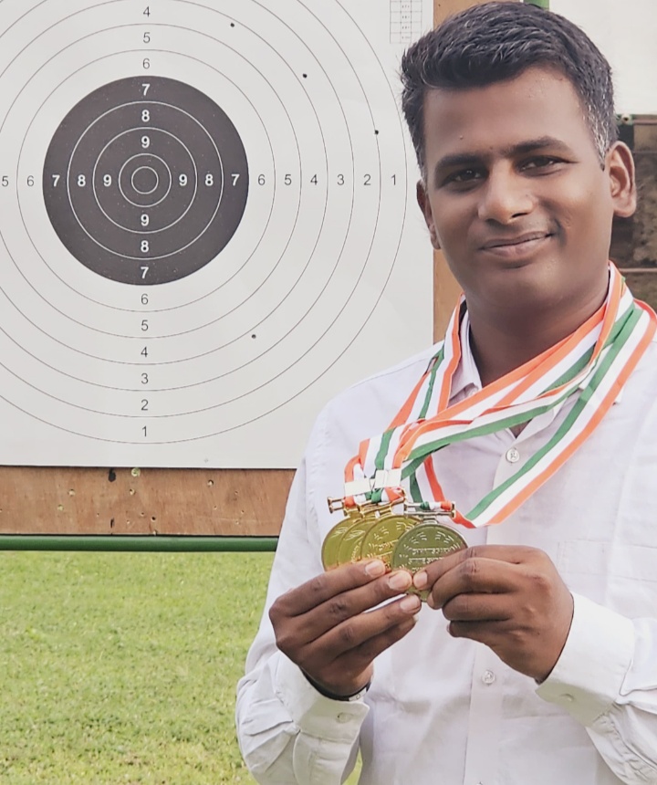 रायगढ़ :- छत्तीसगढ़ प्रदेश रायफल एसोसिएशन द्वारा आयोजित 22 वी शुटिंग चैंपियनशिप में रायगढ़ जिले के पुलिस विभाग में पदस्थ आरक्षक प्रदीप ईजारदार ने तीन गोल्ड मेडल और एक सिल्वर मेडल लाकर रायगढ़ जिले का नाम रोशन किया है। जहां समस्त प्रतियोगी को दुर्ग विधायक एवं छत्तीसगढ़िया ओलंपिक के सेकेट्री देवेंद्र यादवजी के द्वारा मेडल पहनाकर सम्मानित किया गया