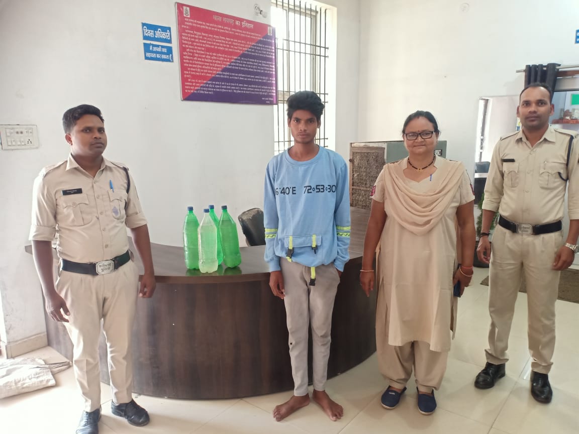 रायगढ़ । अवैध शराब पर कार्यवाही के क्रम में कल दिनांक 26.08.2023 की रात्रि थाना प्रभारी कोतवाली निरीक्षक शनिप रात्रे को मुखबिर से सूचना मिला कि और उर्दना स्कूल के पीछे एक युवक अवैध रूप से शराब बिक्री कर रहा है । सूचना पर तस्दीकी कार्यवाही के लिए थाना प्रभारी द्वारा प्रधान आरक्षक अरुणा चौरसिया के हमराह आरक्षक जगमोहन ओग्रे और उत्तम सारथी को उर्दना रवाना किया गया, जहां मुखबिर के बताये अनुसार स्थान पर घेराबंदी कर रेड कार्यवाही किया गया, जो एक व्यक्ति अवैध रूप से उर्दना स्कुल के पीछे बिक्री करते पाये जाने पर पूछताछ करने पर अपना नाम गोरखनाथ उरांव पिता हरि उरांव उम्र 23 वर्ष सा. उर्दना थाना सिटी कोतवाली जिला रायगढ का रहने वाला बताया, जिसके पास करीबन 08 लीटर महुआ शराब किमती 800 रूपये एवं बिक्री रकम 200 रूपये को गवाहों के समक्ष जप्त किया गया है । आरोपी पर थाना कोतवाली में धारा 34(2),59 (क) आबकारी एक्ट के तहत कार्यवाही कर रिमांड पर भेजा गया है ।
