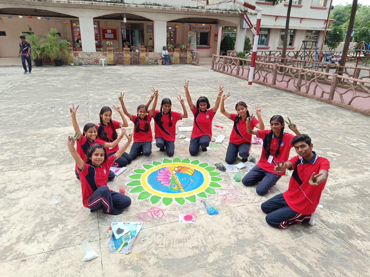बच्चों के लिए आयोजित किया गया था.. जिन्हें चार अलग-अलग हाउस में बांट दिया गया था जिनमें अग्नि, पृथ्वी ,आकाश और शौर्य हाउस के बच्चों ने रंगोली बनाकर कृष्ण के लिए अपनी श्रद्धा और प्रेम का भाव प्रकट किया.. अग्नि येलो हाउस के बच्चों को प्रथम पुरस्कार ग्रीन पृथ्वी हाउस के बच्चों को द्वितीय पुरस्कार और ब्लू आकाश हाउस के बच्चों को तृतीय पुरस्कार प्राप्त हुआ.. विद्या विकास कॉन्सेप्ट स्कूल के प्राचार्य किरण डोमाटा ने कहा कि इन प्रतियोगिताओं का उद्देश्य बच्चों के मन में अपनी कला और संस्कृति के प्रति रुचि पैदा करना है.. ताकि आगे चलकर वे अपनी शिक्षा के साथ-साथ संस्कृति का पाठ भी ना भूले..