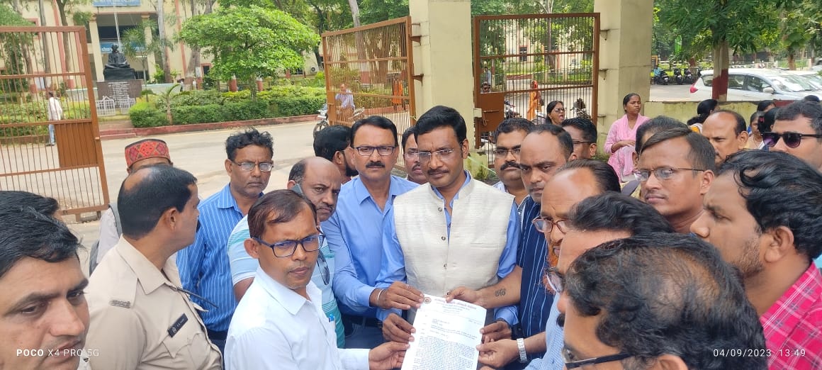 रायगढ़ :- छत्तीसगढ़ हेल्थ फेडरेशन से संबद्ध स्वास्थ्य विभाग के कर्मचारियों की बर्खास्तगी के विरोध में छत्तीसगढ़ कर्मचारी अधिकारी फेडरेशन जिला शाखा रायगढ़ ने आज छत्तीसगढ़ कर्मचारी अधिकारी फेडरेशन जिला शाखा रायगढ़ के संरक्षक श्री शेख कलीमुल्लाह के मार्गदर्शन व फेडरेशन के जिला सचिव आशीष रंगारी के नेतृत्व में माननीय मुख्यमंत्री के नाम डिप्टी कलेक्टर श्री एस एस कंवर को ज्ञापन सौपा। विदित हो कि छग हेल्थ फेडरेशन से सम्बद्ध 12 संगठन जिनमे स्वास्थ्य विभाग के स्वा० संयोजक ,नर्सिंग केडर डॉक्टर अधिकारी/कर्मचारी शामिल हैं, 21 अगस्त से अनिश्चितकालीन हड़ताल कर रहे हैं,जिन पर प्रदेश सरकार ने बर्खास्तगी एवं एफआईआर जैसे दमनात्मक कार्यवाही चालू कर दी। लोकतांत्रिक तरीके से शासन प्रशासन को सूचना देकर अनिश्चितकालीन हड़ताली कर्मचारियों पर बर्खास्तगी की ऐसी दमनकारी कार्यवाही से कर्मचारी संगठनों में रोष व्याप्त है। इसी तारतम्य में छत्तीसगढ़ कर्मचारी अधिकारी फेडरेशन जिला शाखा रायगढ़ ने स्वास्थ्य विभाग की बर्खास्तगी के विरोध व इनकी वेतन विसंगति सहित पांच सूत्रीय मांगों के समर्थन में आज माननीय मुख्यमंत्री के नाम ज्ञापन सौपा आज ज्ञापन सौंपते समय जिला कलेक्ट्रेट के सामने भारी संख्या में फेडरेशन से सम्बद्व विभिन्न संगठनों के पदाधिकारी व सदस्य एकत्र हुए और प्रदेश सरकार के खिलाफ नारेबाजी करते हुए जमकर हल्ला बोला। ज्ञापन कार्यक्रम में आज छत्तीसगढ़ कर्मचारी अधिकारी फेडरेशन के संरक्षक डॉक्टर डी आर प्रधान छत्तीसगढ़ प्रदेश तृतीय वर्ग शासकीय कर्मचारी संघ के कार्यकारी अध्यक्ष संजीव सेठी, सचिव विनोद सड़गी , एलबीएस जटवार सुखदेव सिदार भानु प्रकाश बड़ा छर्त्तीसगढ़ चतुर्थ वर्ग लघु वेतन कर्मचारी संघ से रवि गुप्ता विष्णु यादव राजकुमार राज वेद प्रकाश अजगले ओमप्रकाश डनसेना छत्तीसगढ़ राज्य संरक्षक संघ के अध्यक्ष रूपलाल सिदार कोषाध्यक्ष श्रीमती प्रभा चंद्राकर राजस्व पटवारी संघ के अध्यक्ष सुधीर पंडा, सचिव अभिषेक साहू मनीष सिदार गणेश रात्रे रामप्रसाद पटेल व्याख्याता संघ के अध्यक्ष श्री नरेंद्र पर्वत छत्तीसगढ़ प्रधान पाठक कल्याण संघ से श्री राजेंद्र चौरसिया पशु चिकित्सा क्षेत्र अधिकारी संघ के अध्यक्ष पीसी साहू के. आई .टी. कर्मचारी संघ के अजय पटेल हिदायत खान तथा डॉक्टर प्रकाश चेतवानी डॉ विनोद नायक एवं छत्तीसगढ़ हेल्थ फेडरेशन रायगढ़ के संयोजक रोहित कुमार डनसेना , रविशंकर स्वर्णकार ,आशा साहू अपने साथियो के साथ उपस्थित रहे*.