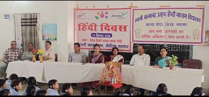 तमनार- जेएसपी फाउण्डेशन, जेपीएल तमनार द्वारा ’’हिन्दी दिवस’’ 14 सितम्बर 2023 के अवसर पर स्वामी आत्मानंद उत्कृष्ठ हिंदी माध्यम विद्यालय कन्या गोढ़ी में वर्तमान परिप्रेक्ष्य में हिन्दी भाषा की उपादेयता विषय पर गोष्ठी का आयोजन किया गया। इस दौरान तमनार क्षेत्र के भाषा विशेषज्ञ वरिष्ठ व्याख्याताओं द्वारा हिन्दी भाषा को अधिकाधिक बढावा देने और इसे वैश्विक मान्यता व विश्व में सबसे प्रचलित व प्रसारित भाषा बनाने के विषय पर विचार मंथन किया गया।