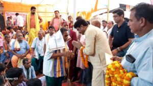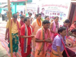देकर स्वागत किया। आमसभा को संबोधित करते हुए सरिया क्षेत्र के गुरु सुशील कुमार जी तथा प्रसन्न भाई रामेश्वर महाराज खीरसागर दास महाराज सफेद गुप्ता आदि जन्म प्रतिनिधियों ने शंकर लाल द्वारा किए जा रहे कार्य एवं सनातन संस्कृति तथा ग्रामीण परिवेश को प्रोत्साहित करने के अभियान की जमकर प्रशंसा की साथी लोगों ने बताया की आने वाले समय में सभी लोग एकजुट के साथ शंकर अग्रवाल के साथ कंधा से कंधा मिलाकर काम करेंगे इस दौरान कार्यकर्ताओं और आमसभा को संबोधित करते हुए कार्यक्रम के संयोजक शंकर लाल अग्रवाल ने बताया कि आम जनता को जब-जब उनकी जरूरत पड़ेगी तब निसर्त उनके साथ खड़े रहेंगे क्षेत्र के लोगों के लिए उनका पूरा परिवार हमेशा खड़ा रहेगा रायगढ़ से पूरे प्रदेश में कीर्तन से जुड़े कलाकारों को शासन से जोड़ने का प्रयास सार्थक हो रहा है कई कीर्तन परियों का पंजीयन छत्तीसगढ़ शासन में कर दिया गया है अब आने वाले समय में सभी कीर्तन पार्टी का पंजीयन शासन स्तर पर करके उन्हें छत्तीसगढ़ सरकार की योजनाओं का लाभ दिलाने का प्रयास किया जाएगा। कार्यक्रम के दौरान क्षेत्र के वरिष्ठ नागरिक सुभाष पटेल किरोध पटेल जयराम पटेल कुशवा पटेल अभिमन्यु पटेल, धोलामणि साहू,धनु यादव ,मधु निषाद, भगवानों यादव , प्रेम शंकर पाणिग्रही, पूर्ण चंद पाणिग्रही, करुणा पाणिग्रही, बोदराम पटेल, गिरधारी निषाद, बोद राम डनसेना, सहित सैकड़ो जनप्रतिनिधियों का सम्मान शंकर लाल अग्रवाल के द्वारा किया गया है।
