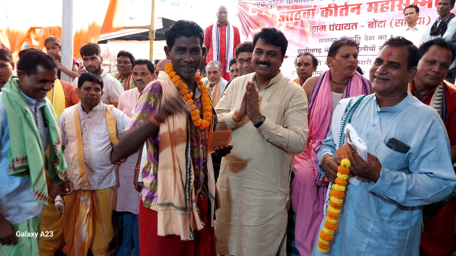 इसके बाद सरिया क्षेत्र के कलाकारों ने अष्ट प्रहरी नमक की शुरुआत की लगातार 24 घंटे नाम यज्ञ निरंतर संचालित होने के बाद मंचीय कार्यक्रम किया गया। इस दौरान कार्यक्रम संयोजक तथा जिला कांग्रेस कमेटी की कोषाध्यक्ष शंकर लाल अग्रवाल के बोंडा पहुंचते ही स्थानीय ग्रामीण और कलाकारों ने उनका आदमी स्वागत किया इसके बाद जनप्रतिनिधियों ने बारी-बारी से कीर्तन मंडलियों के कलाकारों से उनकी मुलाकात कराया गया। मंच पर मुख्य अतिथि शंकर लाल अग्रवाल का बोद राम पटेल, भूखऊ पटेल, राजू पटेल, मुन्ना पटेल, मनीष महाराज, घुराऊ यादव, मुंडा निषाद, आनंद खरा, तोश राम पटेल, सहित उपस्थित ग्रामीणों ने पुष्प हार एवं अंग वस्त्र