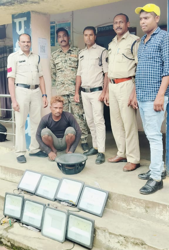 रायगढ़ । आज दिनांक 02.10.2023 के दोपहर पुलिस चौकी खरसिया में ग्राम मौहापाली में रहने वाले दूजे राम राठिया पिता रेशम लाल राठिया उम्र 35 वर्ष द्वारा लिखित आवेदन देकर उसके घर से 08 नग एलईडी लाइट और 15 इंच का स्पीकर चोरी होने के संबंध में रिपोर्ट दर्ज कराया, जिसने बताया कि 28 सितंबर की रात्रि घर पर खाना खाकर सोया हुआ था, सुबह जब उठा तो देखा घर में रखे 8 नग एलईडी लाइट और 15 इंच का स्पीकर नहीं था, किसी अज्ञात चोर ने घर के पीछे का दरवाजा कुंदा खोलकर सामानों की चोरी कर ले गया था जिसे अपने स्तर पर पता कर रहा था । तब गांव के कौशल पटेल उर्फ गब्बर नाम के युवक के चोरी करने संबंध में जानकारी मिली । पुलिस चौकी खरसिया में नकबजनी का अपराध (धारा 457,380 आईपीसी) दर्ज कर चौकी प्रभारी खरसिया उप निरीक्षक मनीष कांत सिंह द्वारा संदेही कौशल पटेल उर्फ गब्बर को तत्काल हिरासत में लेकर चोरी के संबंध में हिकम्त अमली से पूछताछ किया गया । *आरोपी – कौशल पटेल उर्फ गब्बर पिता रामचरण पटेल उम्र 29 वर्ष निवासी ग्राम मौहापाली खरसिया* द्वारा चोरी करना स्वीकार किया जिसके मेमोरंडम पर *08 नग एलईडी लाइट, 15 इंच का स्पीकर जुमला कीमती लगभग ₹25,000 की मशरूका की जप्त* कर आरोपी को नकबजनी के अपराध में गिरफ्तार कर न्यायिक रिमांड पर भेजा गया है ।