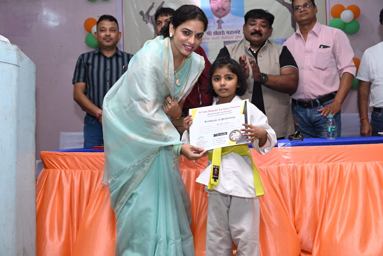 रायगढ़ / अघरिया धर्मशाला में आयोजित कराते बेल्ट ग्रेडिंग प्रशिक्षण कार्यक्रम सुषमा प्रकाश नायक ,कराते के सीनियर मास्टर रेन्शी श्याम कुमार गुप्ता 6 डिग्री ब्लैक बैल्ट ,अघरिया सदन के भुवनेश्वर पटेल के मुख्य आथित्य एवं अघरिया धर्मशाला के पदाधिकारियों लक्ष्मी पटेल सहित अन्य प्रमुख पदाधिकारियों की उपस्थिति में सम्पन्न हुआ जिसमें मंच संचालन सेंसेई अमित मंडल जिला कराते सचिव, एवं बिलासपुर कोच सेंसेई शिवा निर्मलकर ,सेंसेई काजी हसनूर,सेंसेई दीपक दास, सेंसेई संध्या चौहान, सेंसेई तज्जली परवीन द्वारा बैल्ट परीक्षा में भाग लेने वाले खिलाड़ियों को एडवांस ट्रेनिंग दिया गया मुख्य अतिथियों द्वारा खिलाड़ियों को बेल्ट सर्टिफिकेट प्रदान किये गए वही अपने उद्बोधन में मार्शल आर्ट्स कराते को हर बेटियों को सीखने के लिए कहा वही सीनियर मास्टर रेन्शी ने कराते मार्शल आर्ट्स को बढ़ावा देने के लिए अपने शिष्यों सेंसेई खेत्रो महानंद साथ साथ अमित मंडल शिवा ,काजी, संध्या चौहान ,तज्जली परवीन को धन्यवाद देते हुए कहा ऐसे ही मार्शल आर्ट्स को जन जन तक पहुचाने अभियान में काम करते रहे जिस दिन देश के बच्चे जापान चीन जैसे मार्शल आर्ट्स को अपने जीवन में ले आये उस दिन भारत महान सही में महान हो जाएगा जापान चीन के हर व्यक्ति मार्शल आर्ट्स करता है चाहे वो डॉक्टर हो इंजीनियर हो व्यापारी हो या नॉकरी पेशा हो साथ ही भुवनेश्वर पटेल ने कार्यक्रम की गरिमा उद्देश्य की तारीफ़ की सभी अतिथियों को स्मृति चिन्ह सीनियर कोचों के द्वारा प्रदान किया गया आभार प्रकट सेंसेई अमित मंडल ने की।