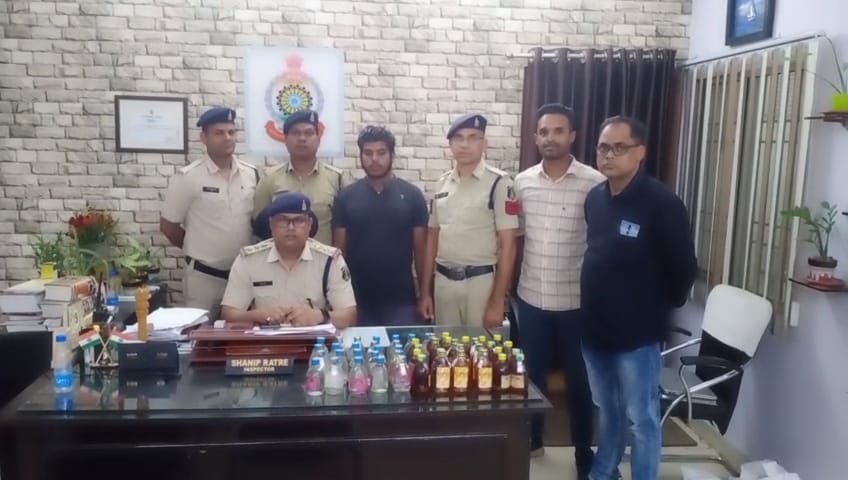 रायगढ़ । एसएसपी श्री सदानंद कमार के निर्देशन पर अवैध शराब बिक्री व परिवहन पर कार्रवाई के लिये थाना प्रभारी कोतवाली निरीक्षक शनिप रात्रे द्वारा स्टाफ व मुखबिर तैनात कर लगातार कार्यवाही किया जा रहा है । इसी क्रम में आज दिनांक 18/10/2023 के शाम कोतवाली टीआई शनिप रात्रे के नेतृत्व में कोतवाली पुलिस की टीम द्वारा जोगीडिपा में शराब रेड कार्यवाही किया गया । कोतवाली पुलिस को सूचना मिली थी कि सोहेल खान नाम का युवक अवैध रूप से शराब बिक्री के लिए भारी मात्रा में शराब घर पर छिपा कर रखा हुआ है । कोतवाली पुलिस जोगीडिपा पहुंचकर सोहेल खान को तलब किया गया जिसने पहले शराब रखने से इंकार किया पर कड़ी पूछताछ में उसने अवैध रूप से शराब बिक्री के लिए घर पर छिपाकर रखना स्वीकार किया । पुलिस कोतवाली पुलिस ने *आरोपी सोहेल खान पिता काजू खान 19 वर्ष निवासी जोगीडिपा थाना कोतवाली* के कब्जे से 60 पाव देशी शराब और 10 पाव अंग्रेजी शराब कुल कीमत 6,900 रुपये गवाहों के समक्ष विधिवत जप्ती का आरोपी को थाने लाया गया जिस पर थाना कोतवाली में धारा 34 (2),59(क) आबकारी एक्ट के तहत कार्यवाही किया गया है । थाना प्रभारी कोतवाली निरीक्षक शनिप रात्रे के साथ शराब रेड कार्यवाही में प्रधान आरक्षक विक्रम चौरसिया, हेमन्त पात्रे, नरेंद्र यादव, आरक्षक जगमोहन ओग्रे, संदीप मिश्रा, मनोज पटनायक और गोविंद पटेल शामिल थे ।