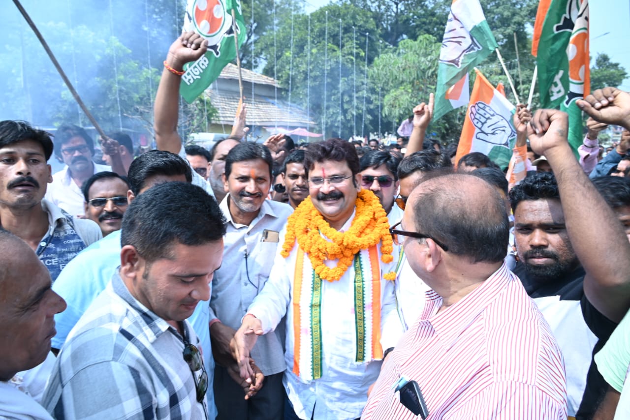 रायगढ़ / कांग्रेस पार्टी द्वारा विधायक प्रकाश नायक को फिर एक बार अपना अधिकृत प्रत्याशी बनाए जाने की घोषणा के बाद से ही रायगढ़ के शहरी एवं ग्रामीण क्षेत्रो में जश्न का माहौल देखने को मिला।जहा कांग्रेसी कार्यकर्ता एक दूजे को बधाई देते व आतिशबाजी के साथ जश्न मनाते नजर आ रहे थे।वही विधायक प्रकाश नायक को सुबह से ही बधाई देने कार्यकर्ताओ का तांता लगा रहा।इस दौरान जिला कांग्रेस कमेटी से विधायक प्रकाश नायक महात्मा गांधी जी की प्रतिमा के पास उन्हे माल्यार्पण करने पहुंचे।जिसमे हजारों की संख्या में शहरी एवं ग्रामीण क्षेत्रों हजारों कार्यकर्ता भी विधायक के साथ शामिल हुए। जहा विधायक द्वारा महात्मा गांधी की प्रतिमा पर माल्यार्पण कर उन्हे नमन किया गया। जहा हजारों की संख्या में कांग्रेसी कार्यकर्ता विधायक के साथ गांधी प्रतिमा पहुंचे।वही इस दौरान कांग्रेस से दावेदारी करने वाले वरिष्ठ कांग्रेसी नेताओ में डॉक्टर राजू अग्रवाल,संगीता गुप्ता ,अरुण गुप्ता,बलबीर शर्मा,जयंत ठेठवार,सलीम नियारियां,सहित कई दिग्गज नेता एक ही मंच पर नजर आए।जिन्होंने विधायक प्रकाश नायक को शुभकामनाए प्रदान की।वही सभी कांग्रेसी दिग्गज नेता कांग्रेस को जीत दिलाने संकल्पित नजर आए।