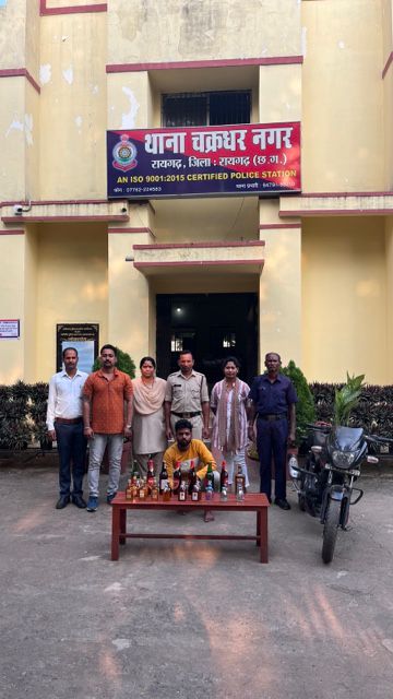 रायगढ़ । वरिष्ठ पुलिस अधीक्षक श्री सदानंद कुमार द्वारा अवैध मादक पदार्थों पर प्रभावी कार्यवाही करने के दिए गए दिशा निर्देशों के क्रम में आज दिनांक 19.10.2023 को चक्रधरनगर क्षेत्र में साइबर सेल एवं चक्रधरनगर पुलिस की संयुक्त टीम द्वारा भारी मात्रा में शराब तस्करी कर रहे युवक को पहाड़ मंदिर के पास घेराबंदी कर पकड़ा गया है । वरिष्ठ पुलिस अधिकारी को उनके सक्रिय किये मुखबिर से सूचना मिला कि एनएच 49 ढाबा का संचालक सौरव सिंह निवासी ग्राम जोरापाली अवैध बिक्री के लिए शराब लेने पल्सर बाइक से चक्रधरनगर की ओर निकाला है । सूचना पर कार्रवाई के लिये थाना चक्रधरनगर एवं साइबर सेल की टीम तैयार कर टीम को पहाड़ मंदिर मार्ग पर नाकेबंदी के लिये लगाया गया । पुलिस टीम ने पहाड़ मंदिर मार्ग आश्रम मोड़ पर घेराबंदी कर पल्सर मोटरसाइकिल में संदिग्ध युवक को पकड़ा पूछताछ में उसने अपना नाम *सौरव सिंह पिता प्रदीप सिंह उम्र 26 साल निवासी ग्राम जोरापाली NH 49 ढाबा थाना कोतरारोड रायगढ़* बताया जिसके पास थैला से अंग्रेजी शराब की 1 बॉटल, 7 नग बीयर बॉटल, 20 पाव देशी/अंग्रेजी शराब जप्त किया गया है । आरोपी को आचार संहिता की जानकारी देकर शराब परिवहन के संबंध में नोटिस देकर थाना चक्रधरनगर लाया गया । आरोपी के कृत्य पर अवैध शराब करीब ₹5000 एवं पल्सर मोटरसाइकिल क्रमांक सीजी 09 जे.के. 8835 की जप्ती कर आरोपी पर थाना चक्रधरनगर में धारा 34(2),59(क) आबकारी एक्ट की कार्रवाई कर रिमांड पर भेजा गया है । चक्रधरनगर पुलिस द्वारा चालानी कार्रवाई के साथ शराब परिवहन में प्रयुक्त पल्सर बाइक को राजसात की कार्रवाई के लिये प्रतिवेदन जिला दंडाधिकारी रायगढ़ को प्रस्तुत किया जावेगा । शराब रेड कार्यवाही में थाना प्रभारी चक्रधरनगर निरीक्षक प्रशांत राव अहेर, प्रभारी साइबर सेल निरीक्षक सुखनंदन पटेल, थाना चक्रधर नगर की महिला प्रधान आरक्षक समुंद रनकर, आरक्षक राजेश सिदार तथा साइबर सेल रायगढ़ के प्रधान आरक्षक राजेश पटेल, आरक्षक सुरेश सिदार, विक्रम सिंह, महेश पंडा, विकास प्रधान, पुष्पेंद्र जाटवर, नवीन शुक्ला और रविंद्र गुप्ता की अहम भूमिका रही है ।