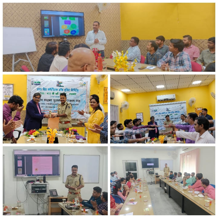 इसी क्रम में आज दिनांक 28.10.2023 को प्रशिक्षु डीएसपी अमन लखीसरानी के साथ साइबर सेल की टीम द्वारा ग्राम कुर्मापाली कोतरारोड़ पावरग्रिड एवं घरघोड़ा पावरग्रिड जाकर राष्ट्रीय साइबर सुरक्षा जागरूकता माह कार्यक्रम में पावरग्रिड के अधिकारी व कर्मचारियों को सायबर अपराधों के संबंध में जानकारी देकर जागरूक किया गया ।