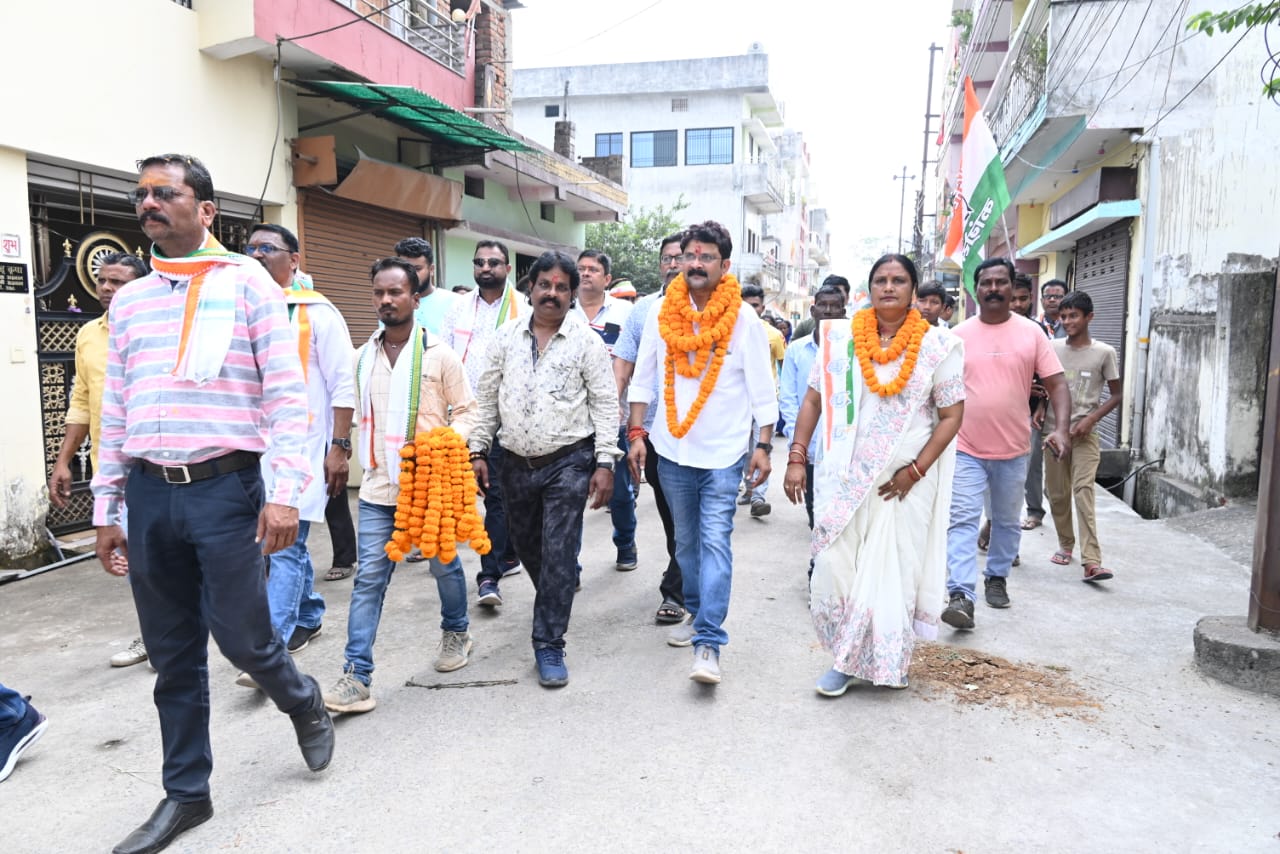 रायगढ़- विधानसभा चुनाव को लेकर विधायक प्रकाश नायक लगातार शहरी एवम ग्रामीण क्षेत्रों में जनसंपर्क कर लोगो से भेटमुलाकात करते हुए प्रदेश कांग्रेस द्वारा चलाई जा रही जनकल्याणकारी योजनाओं एवम घोषणाओं से अवगत कराते हुए कांग्रेस के पक्ष में मतदान कर प्रदेश में एक बार फिर कांग्रेस भूपेश बघेल की सरकार बनाने अपील कर रहे है।इसी तारतम्य में विधायक द्वारा शहर के वार्ड क्रमांक 7,8 एवम 9 में पहुंचे।जहा लोगो का भारी जनसमूह उनके साथ मौजूद रहा।वही लोगो द्वारा पुष्प वर्षा के साथ उनका स्वागत सत्कार किया गया।साथ ही विधायक के आगमन पर ढोल नगाड़ों व आतिशबाजी के साथ सभी वार्डो में उनका स्वागत सत्कार करते वार्डवासियो में भारी उत्साह देखने को मिला।