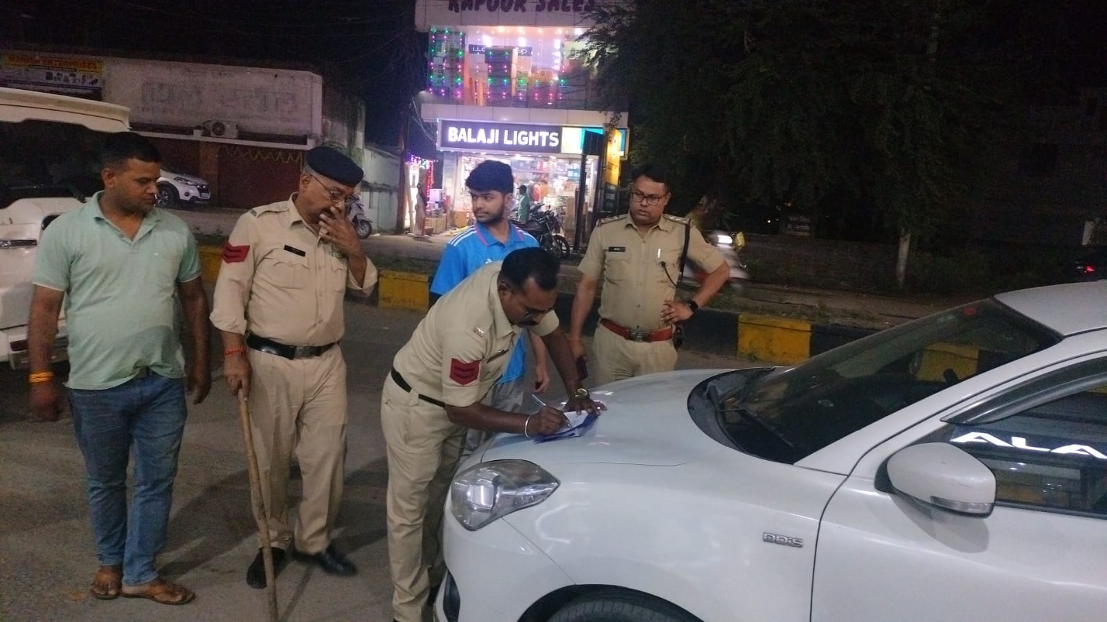 सड़क पर बेतरतीब खड़े गाड़ियों का चालान, दुकानदारों को सड़क पर समान नहीं लगाने की समझाइश…