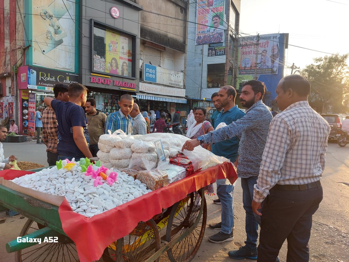 रायगढ़। निगम कमिश्नर श्री सुनील कुमार चंद्रवंशी के निर्देशानुसार आज नगर निगम के राजस्व विभाग एवम एन यू एल एम की टीम के द्वारा गांधी प्रतिमा से लेकर किशोरी मोहन त्रिपाठी कन्या महाविद्यालय तक गुमटी ठेले और सड़क पर खाद्य सामग्री बेचने और गंदगी फैलाये जाने पर निरीक्षण किया निरीक्षण में पाया गया कि दीवाली में बेचे जाने वाले मिठाई आगरा का पेठा, बताशा, खजूर एवम अन्य सामानों में मक्खियां और मच्छर थे । जिससे बीमारी फैलने की आशंका है। निगम की टीम के द्वारा जाली या कपड़े से ढके बिना मिठाई और अन्य खाद्य सामग्री बेचे जाने वाले विक्रेताओं को समझाईश दी गई कि विक्रेता खाद्य सामग्री को बीमारी फैलाने वाले मक्खी, मच्छर,धूल आदि से बचाने के लिए ढक कर रखे खुले में खाद्य सामग्री बेचे जाने और गंदगी पाए जाने पर जुर्माना की कार्यवाही भी की जाएगी, त्यौहार सीजन के असर को देखते हुए गुमटी ठेले और सड़क पर फैला कर समान बेचने वालो की संख्या बढ़ जाती है जिसके कारण ट्रैफिक और आवागमन बाधित होता है । त्यौहार के समय शहर के मुख्य मार्ग में यातायत के दबाव को कम करने के लिए फल ,फूल , दिया, बताशा आदि बेचने वाले को हर साल नटवर स्कूल प्रबंधन से स्कूल के मैदान में जगह दी जाती है लेकिन विक्रेता वहा जाते नही है जिससे ट्रैफिक का दबाव बना रहता है । नगर निगम के द्वारा दीवाली तक प्लास्टिक ,गुमटी ठेले, सड़क बाधा और गंदगी करने वालो पर लगातार कार्यवाही की जाएगी।
