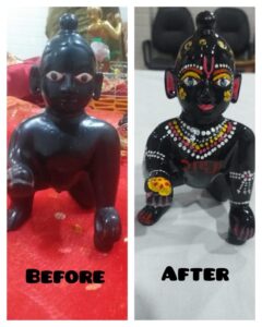 रायगढ़ / रायगढ़ शहर के बहुचर्चित संस्थानों में से एक दिव्य शक्ति की अध्यक्ष ने बेलाधुला मोहल्ले की दो लड़कियों से पहले अपने ही घर में लड्डू गोपाल का श्रृंगार कुछ सीमित सामग्रियों के साथ ही करवाया , उसके बाद कविता बेरीवाल ने अपने घर पर ट्रायल करवाया जब उन्हें पसंद आया तो फिर स्थानीय मारवाड़ी पंचायती धर्मशाला में लड्डू गोपाल के साथ-साथ हिंदू धर्म के अनेक देवी देवताओं का श्रृंगार करना सिखाया , यह कार्यशाला 5 ,6 और 7 नवंबर को नि शुल्क रखा गया। जिसमें शहर के बहुत सारे महिलाओं ने अपने लड्डू गोपाल का ही नहीं वरन कई देवी देवताओं का सिंगार करवाकर उनकी ख़ुशी का ठिकाना न था क्योंकि पीतल के भगवानजी किसी के घर में 20 साल पुराने हैं तो किसी के घर में 30 साल पुराने , इस वजह से उनके मुख् का श्रंगार उतर चुका था