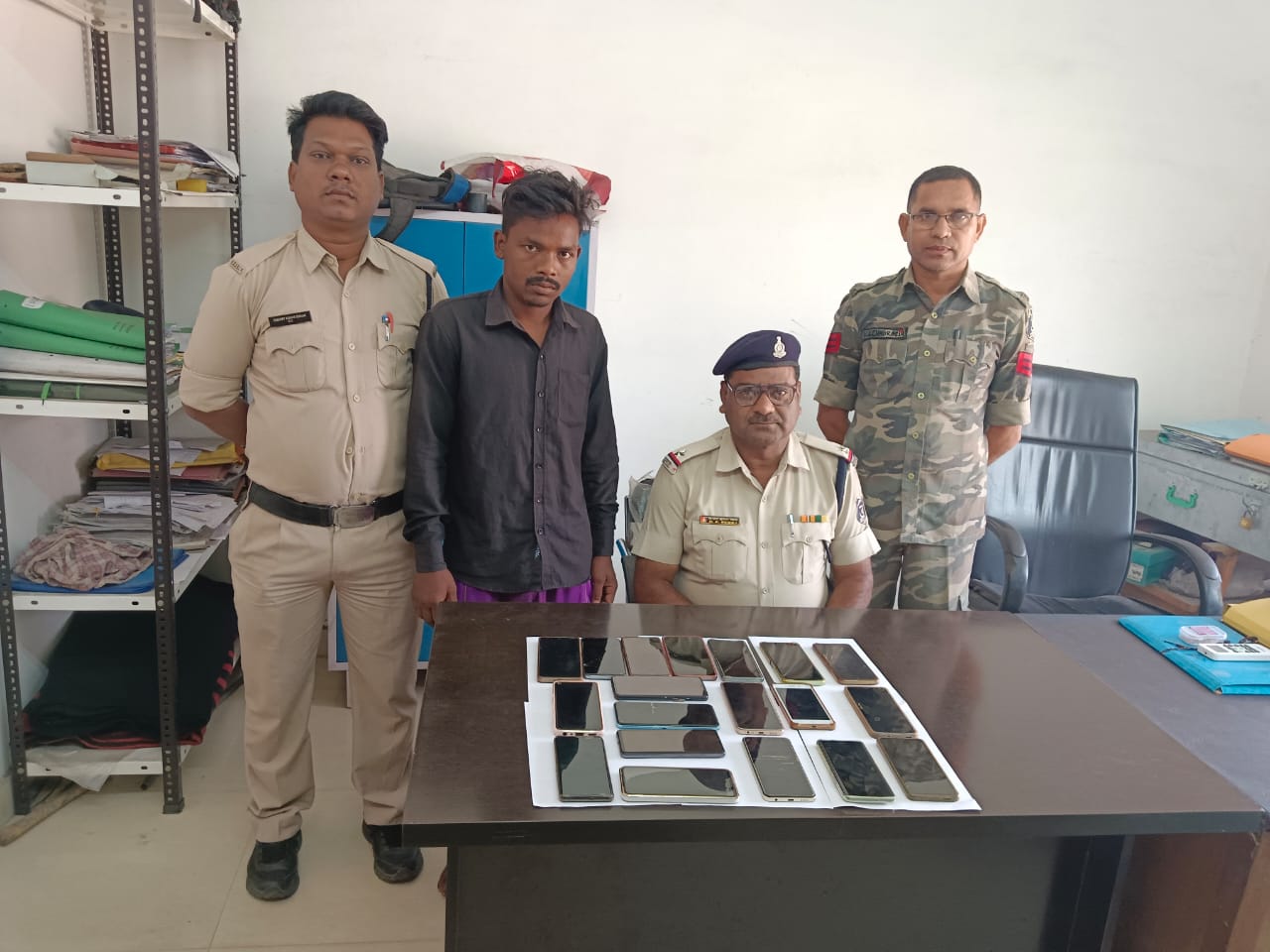 रायगढ़ । कल दिनांक 08/11/2023 को रायगढ़ रेलवे स्टेशन के पास साइबर सेल और कोतवाली पुलिस द्वारा मूखबीर सूचना पर एक युवक को संदिग्ध अवस्था में घूमते हुए पकड़ा गया । पुलिस टीम द्वारा संदेही से पूछताछ करने पर उसने अपना नाम अजय राय निवासी साहिबगंज (झारखंड) का मूल निवासी तथा वर्तमान में किरोड़ीमल नगर में किराया मकान लेकर रहना बताया जिसे क्षेत्र में चोरी की गतिविधियों में शामिल होने की मुखबीर से प्राप्त सूचना के आधार पर हिकमत अमली से पूछताछ करने पर उसने बीते 5 नवंबर के सुबह इतवारी बाजार रायगढ़ में एक व्यक्ति के जेब से रेडमी 10 मोबाइल की चोरी करना और उस मोबाइल में लगे 2 सिम कार्ड को फेंक कर चोरी मोबाइल को अपने घर में छुपा कर रखना बताया । चोरी रेडमी 10 मोबाइल के संबंध में थाना कोतवाली में अप.क्र. 778/2023 धारा 379 आईपीसी दर्ज था । कोतवाली पुलिस और साइबर सेल की टीम द्वारा संदेही के किराया मकान किरोड़ीमल नगर में संदेही को ले जाकर दबिश दिया गया । जहां चोरी की रेडमी 10 मोबाइल के अलावा 18 और विभिन्न कंपनियों के मोबाइल जिसमें वनप्लस, रेडमी, रियलमी, नारजो वन, सैमसंग, वीवो कंपनी के मोबाइल मिले । संदेही अजय राय से अन्य मोबाइल के संबंध में पूछताछ करने पर अजय राय गोल-गोल जवाब देने लगा । कोतवाली स्टाफ द्वारा अजय राय को नोटिस देकर मोबाइल के कागजात की मांग किया गया । अजय राय ने नये महंगे मोबाइलों का कागजात होना नहीं बताया । संदेही से बरामद रेडमी- 10 मोबाइल को थाना कोतवाली के अपराध क्रमांक 778/2023 धारा 379 भादवि में जप्त किया गया तथा शेष 18 नग मोबाइल को धारा 102 सीआरपीसी के तहत कार्यवाही कर जप्ती किया गया है । आरोपी से जप्त *कुल 19 नग मोबाइल का बाजार मूल्य करीब 2 लाख 46,000 रुपए* है । आरोपी की गतिविधियां संदिग्ध होने की सूचना पर साइबर सेल और कोतवाली पुलिस द्वारा हिरासत में लेकर कार्यवाही किया गया है । कार्यवाही में थाना प्रभारी कोतवाली निरीक्षक शनिप रात्रे, सहायक उप निरीक्षक दिलीप बेहरा, आरक्षक कोमल तिवारी तथा साइबर सेल के प्रधान आरक्षक राजेश पटेल, दुर्गेश सिंह, बृजलाल गुर्जर, आरक्षक धनंजय कश्यप, महेश पंडा, प्रशांत पंडा, विक्रम सिंह, नवीन शुक्ला, सुरेश सिदार, प्रताप बेहरा, रविंद्र गुप्ता और नरेश रजक की अहम भूमिका रही है ।