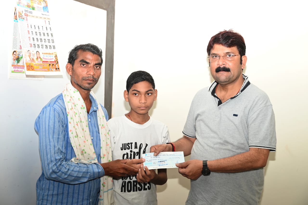 पीड़ित परिवार को विधायक ने सौंपा चेक