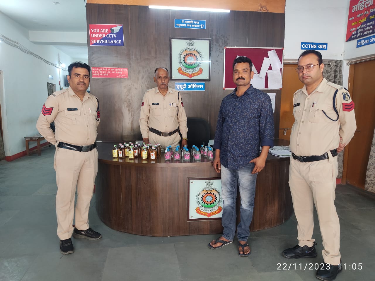 रायगढ़ । एसएसपी श्री सदानंद कुमार के निर्देशन पर रायगढ़ पुलिस अवैध रूप से शराब बेचने वालों के खिलाफ अभियान चला रही है । निर्देशों के पालन में अवैध शराब पर अंकुश लगाने थाना प्रभारी कोतरारोड़ निरीक्षक विजय चेलक द्वारा अवैध शराब के कारोबार में लगे व्यक्तियों पर मुखबिर एवं अपने स्टाफ लगा रखे हैं । इसी क्रम में कल दिनांक 21.11.2023 को थाना प्रभारी कोतरारोड़ को मुखबिर से सूचना मिला कि अभय सिंह निवासी फटहामुड़ा, जुटमिल ग्राम जोरापाली NH 49 ढाबा के पास बोरी में शराब लेकर अवैध रूप से शराब बिक्री के लिये खड़ा है । तत्काल थाना प्रभारी द्वारा अपने थाने की पेट्रोलिंग को कार्रवाई करने निर्देशित किये । कोतरारोड़ पुलिस की पेट्रोलिंग द्वारा रायगढ़-खरसिया नेशनल हाईवे ग्राम जोरापाली पर स्थित NH 49 ढाबा के पास अवैध रूप से शराब बिक्री के लिए खड़े व्यक्ति को घेराबंदी कर हिरासत में लिया गया । अवैध शराब के साथ पकड़े गए *आरोपी अभय सिंह पिता स्वर्गीय दानी सिंह उम्र 39 साल निवासी फटहामुड़ा थाना जूटमिल जिला रायगढ़* के कब्जे से प्लास्टिक बोरी में रखी- 20 पाव देशी प्लेन शराब एवं 20 पाव च्वाइस विस्की अंग्रेजी शराब *कुल 40 पाव शराब कीमती ₹3,800* का कोतरारोड पुलिस द्वारा जप्त किया गया । आरोपी अभय सिंह पूर्व में भी चोरी, एनडीपीएस के मामलों में आरोपी रहा है जिस पर कोतरारोड पुलिस द्वारा 110 सीआरपीसी की कार्यवाही भी की गई है । आरोपी के अवैध शराब बिक्री के धंधे में लिप्त होना पाए जाने से आरोपी को विधिवत गिरफ्तार कर उसके परिजनों को गिरफ्तारी की सूचना देकर आरोपी को आज आरोपी को न्यायिक रिमांड पर भेजा गया है । थाना प्रभारी कोतरारोड निरीक्षक विजय चेलक के निर्देशन पर शराब रेड कार्यवाही में प्रधान आरक्षक अनंत तिवारी, आरक्षक संदीप कौशिक और संजय केरकेट्टा शामिल थे ।