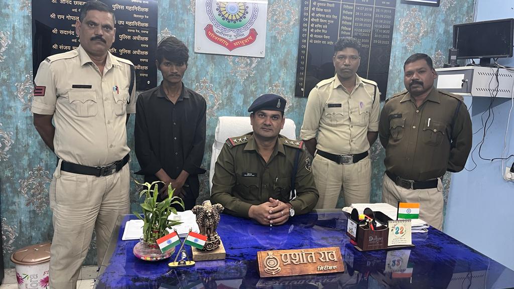 रायगढ़ । प्रभावशील आचार संहिता में पुलिस की सघन जांच एवं सूचनाओं पर त्वरित कार्रवाई जारी है । आज दिनांक 22 /11/2023 के दोपहर थाना प्रभारी चक्रधरनगर निरीक्षक प्रशांत राव अहेर को सूचना मिली कि पंजरी प्लांट में रहने वाला संजय सिंह राजपूत उर्फ बाबू ब्लेड मोहल्ले में उत्पात करते हुए चौंक पर आकर ख़ुख़रीनुमा धारदार चाकू लहराते लोगों को डरा धमका रहा है । सूचना पर थाना प्रभारी द्वारा तत्काल प्रधान आरक्षक संजय तिवारी के साथ पेट्रोलिंग पार्टी को मौके के लिए रवाना किया गया । पुलिस पार्टी द्वारा मौके पर सुरक्षा उपाए अपनाते हुए संजय सिंह राजपूत उर्फ बाबू ब्लेड को एक धारदार खुखरीनुमा धारदार चाकू के साथ काबू में लिया गया । *आरोपी संजय सिंह राजपूत उर्फ बाबू ब्लेड पिता कुलेश्वर सिंह राजपूत उम्र 22 साल निवासी पंजरी प्लांट बुढी माई मंदिर के पीछे थाना चक्रधरनगर जिला रायगढ़* के कब्जे से पुलिस ने धारदार खुखरीनुमा धारदार चाकू की जप्ती की गई । आरोपी के कृत्य पर थाना चक्रधरनगर में धारा 25, 27 आर्म्स एक्ट के तहत कार्यवाही कर आरोपी को न्यायिक रिमांड पर भेजा गया है । आर्म्स एक्ट कार्रवाई में प्रधान आरक्षक संजय तिवारी, सतीश पाठक, आरक्षक श्याम सिदार, चन्द्र कुमार बंजारे, अभय यादव की विशेष भूमिका रही है ।