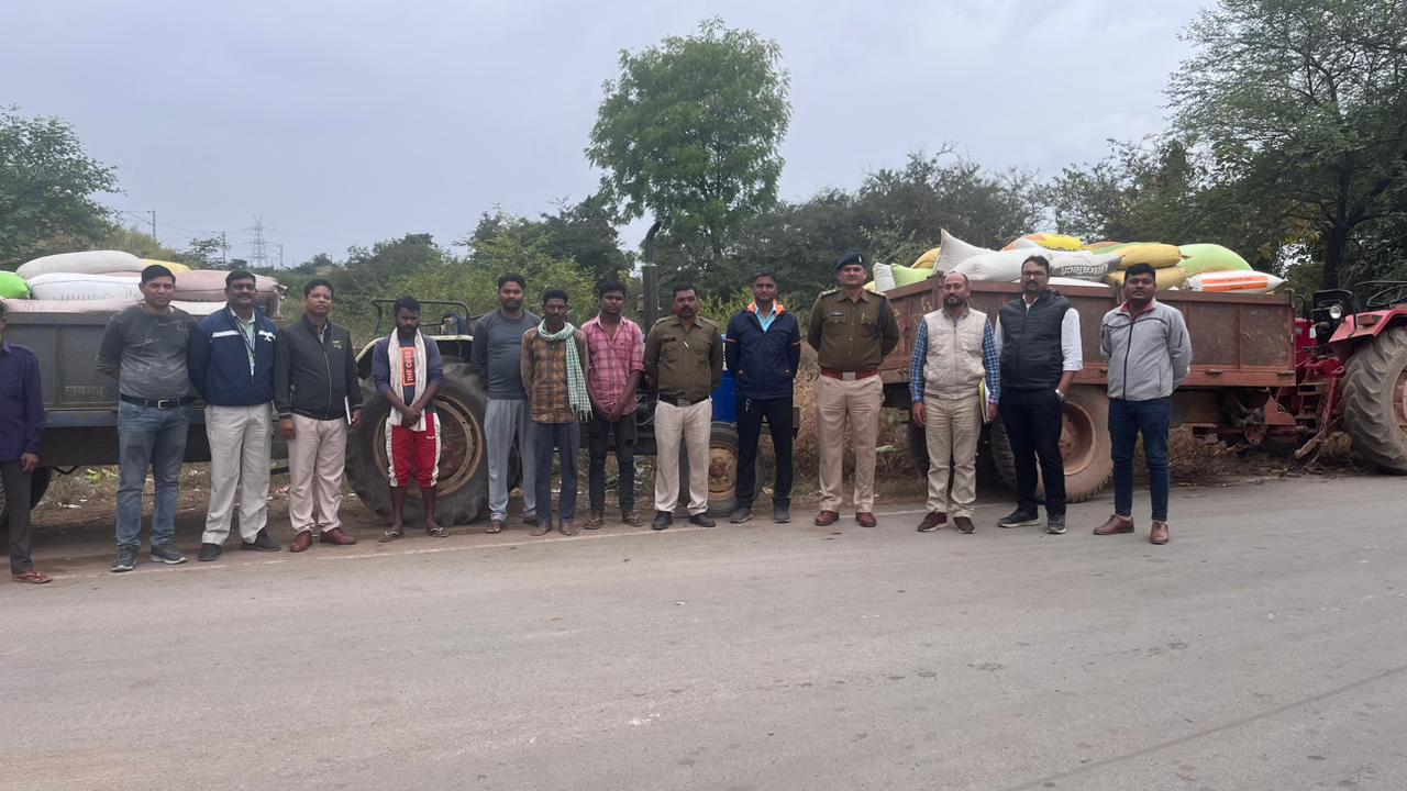 इसी क्रम में आज दिनांक 05.12.2023 के सुबह थाना प्रभारी चक्रधरनगर निरीक्षक प्रशांत राव अहेर को मुखबिर से सूचना प्राप्त हुई कि कनकतुरा उड़ीसा की ओर से दो ट्रैक्टरों में 4 व्यक्ति धान लेकर रायगढ़ मंडी की ओर निकले हैं । थाना प्रभारी द्वारा खाद्य अधिकारियों को सूचना देकर क्षेत्र में पेट्रोलिंग कर रही साइबर सेल की टीम को साथ लेकर एकताल बैरियर पहुंचे । मौके पर चक्रधरनगर पुलिस , साइबर सेल और खाद्यविभाग की संयुक्त टीम द्वारा दो ट्रैक्टर सीजी 13 ए- 2475 एवं सीजी 13 वाई- 5158 में *कुल 120 कट्टा धान करीब 50 क्विंटल धान* रखा हुआ पाया गया, पूछताछ में ट्रैक्टर में मौजूद व्यक्ति- मनोज कुमार चौहान निवासी धनवारडेरा, भोजराज तंटी निवासी जरायबोगा सुंदरगढ़, अनिल सिदार एकताल डिपापारा और तेजसन सिदार एकताल डिपापारा द्वारा कोई संतोषप्रद जवाब नहीं दिए जाने पर खाद्य अधिकारियों द्वारा अवैध धान मय ट्रैक्टर समेत जप्त कर अग्रिम कार्यवाही की जा रही है । कार्यवाही में पुलिस टीम से टीआई निरीक्षक प्रशांत राव अहेर थाना प्रभारी चक्रधरनगर, थाना चक्रधरनगर के सहायक उप निरीक्षक नंदकुमार सारथी, आरक्षक सुशील मिंज और साइबर सेल के प्रधान आरक्षक बृजलाल गुर्जर, आरक्षक पुष्पेंद्र जाटवार, धनंजय कश्यप शामिल थे ।