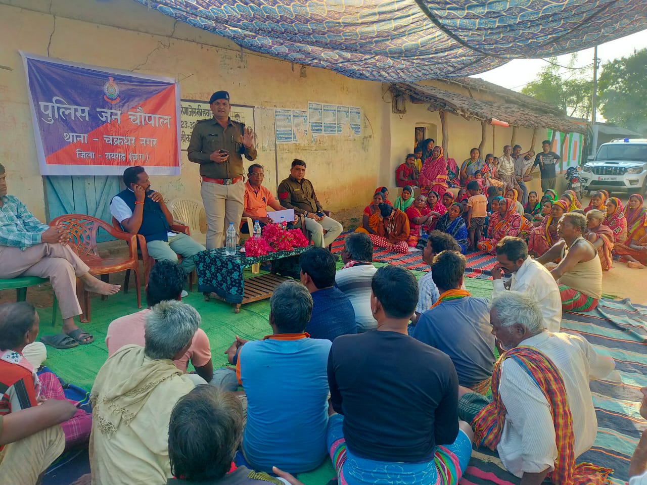 रायगढ़ । वरिष्ठ पुलिस अधीक्षक श्री सदानंद कुमार के दिशा निर्देशन पर थाना प्रभारी चक्रधरनगर निरीक्षक प्रशांत राव अहेर के नेतृत्व में चक्रधरनगर पुलिस द्वारा आज दिनांक 15.12.2023 को ग्राम एकताल में “पुलिस जन चौपाल” आयोजित किया गया जिसमें उपस्थित आए ग्रामीणों को थाना प्रभारी द्वारा विविध अपराधों की जानकारी दी गई । थाना प्रभारी द्वारा ग्रामवासियों को विशेष कर मोबाइल व आनलाइन होने वाले धोखाधड़ी से सावधान रहने, साइबर क्राइम, रकम दोगुना करने की बात करने वालों, फेरी वालों व अजनबी व्यक्तियों से सोना चांदी चमकाने के नाम पर ठगी करने वाले व्यक्तियों से सावधान रहने की हिदायत दी गई।