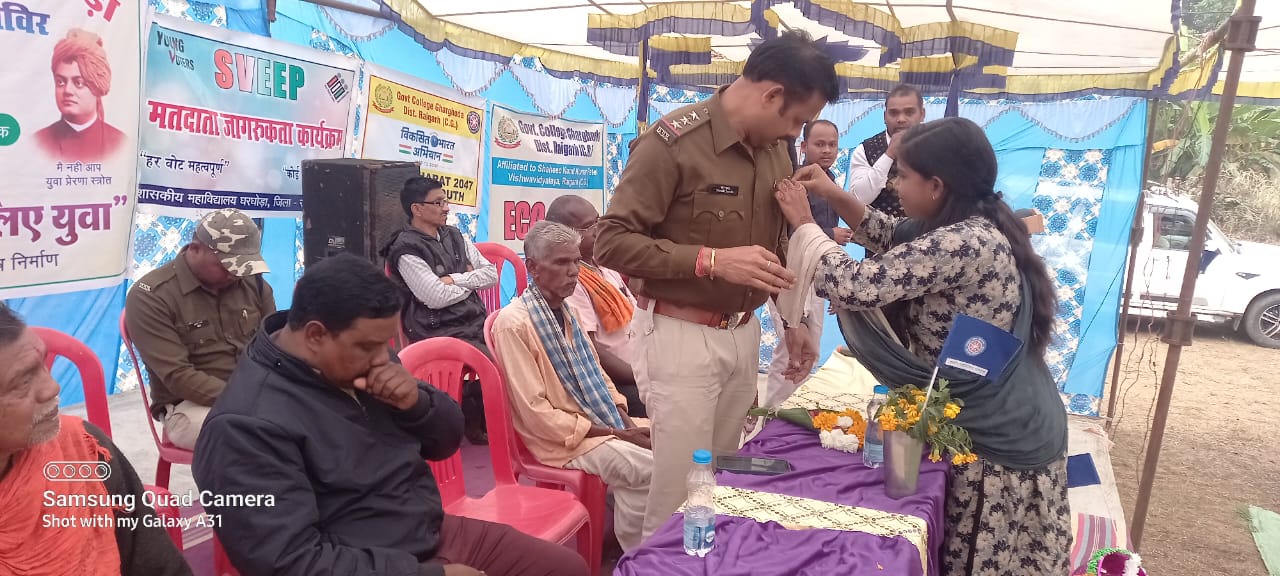 रायगढ़ । आज दिनांक 20.01.2024 को थाना प्रभारी घरघोड़ा निरीक्षक शरद चन्द्रा द्वारा ग्राम औराईमुड़ा में लगे एनएसएस कैम्प में छात्र-छात्राओ एवं ग्रामवासियों को “सड़क सुरक्षा मितान”, नशा मुक्ति, साइबर अपराध, महिला संबंधी विविध अपराधों एवं बचाव के संबंध में जानकारी देकर जागरूक किया गया ।