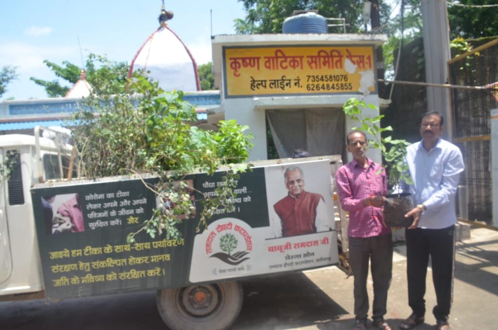 रामदास द्रौपदी फाउंडेशन द्वारा गत दिनों बोईरदादर स्थित कृष्ण वाटिका कॉलोनी फेस 2 के मंदिर प्रांगण में बेल का पौधा रोपित किया गया। इसके अतिरिक्त कॉलोनी के अन्य कई स्थानों पर भी फलदार, शोभाकारी, व फूलदार पौधे रोपित किए गए। वहीं कॉलोनी के गणमान्य लोगों ने भी अपनी आवश्यकताओं के अनुरूप घरों में रोपित करने हेतु रामदास द्रौपदी फाउंडेशन के पर्यावरण संरक्षण रथ से पौधे लिए। उक्त कार्यक्रम में सर्वश्री पंचराम मीरी, खूबचंद कुमार, राकेश वर्मा सहित कॉलोनी के गणमान्य जन व वहाँ के गार्ड श्रीवास्तव आदि उपस्थित रहे।