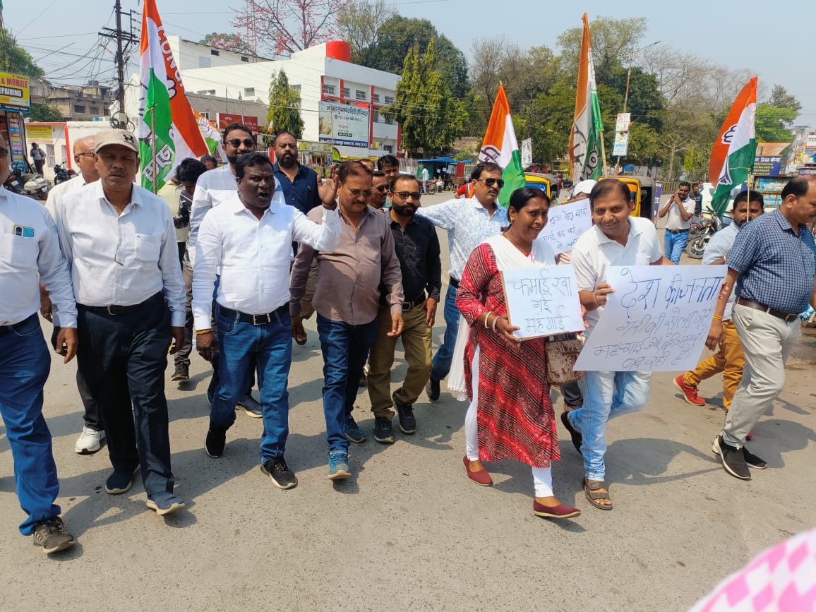 रायगढ 2 मार्च / प्रदेश कांग्रेस कमेटी द्वारा लिए गए निर्णयानुसार आज 2 मार्च को पूरे प्रदेश के जिला मुख्यालयों में बढ़ती महंगाई को लेकर धरना प्रदर्शन के कार्यक्रम के तहत जिला कांग्रेस कमेटी के अध्यक्ष अनिल शुक्ला के निर्देशानुसार शहर कांग्रेस प्रभारी महामन्त्री शाखा यादव के नेतृत्व व वरिष्ठ कांग्रेसजनों की गरिमामयी उपस्थिति में कांग्रेसजन केन्द्र की मोदी सरकार की विफलताओं एवं गलत नीतियों के कारण देश में बढ़ती महंगाई जैसे- खाद्य पदार्थ, सब्जी, पेट्रोल, डीजल, एलपीजी, सीएनजी / पीएनजी की कीमतों में बेतहाशा वृद्धि के खिलाफ स्थानीय संजय काम्प्लेक्स सब्जी बाजार में सब्जी व किराना स्टोर्स में दैनिक आवश्यक / रोजमर्रा की वस्तुएं महंगी कीमतों में खरीदकर विरोध-प्रदर्शन किया गया।
