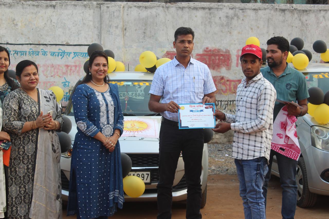 नि शुल्क मोटर प्रशिक्षण लेने के लिए रायगढ़ ही नहीं वरन रायगढ़ बॉर्डर से लगे हुए उड़ीसा एवं बिहार से भी युवक आते हैं मध्यवर्गीय परिवार के लिए दिव्य शक्ति की यह पहल किसी वरदान से कम नहीं , सेकेंड बैच में आठ लड़कों की ट्रेनिंग पूरी हुई प्रशिक्षण पूरी होते ही, एक लड़के की अच्छी जगह पर नौकरी भी लग गई है। यह खबर दिव्य शक्ति सदस्यों के लिए एक सुखद अनुभूति वाला पल होता है