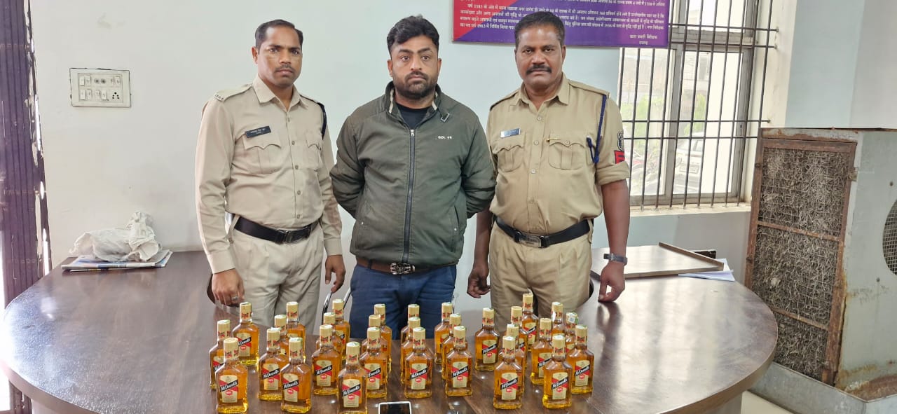 19 मार्च, रायगढ़ । जिले में अवैध रूप से शराब विक्रय करने वालों पर मुखबीर लगाकर लगातार कार्यवाही किया जा रहा है । इसी क्रम में आज शाम थाना प्रभारी कोतवाली निरीक्षक सुखनंदन पटेल के नेतृत्व में कोतवाली पुलिस की टीम द्वारा मुखबीर सूचना पर अवैध ब्रिकी के लिये शराब परिवहन कर रहे आरोपित *हितेश परमार पिता हरीश परमार उम्र 36 वर्ष सा० षडंगी कालोनी सर्किट हाउस थाना कोतवाली जिला रायगढ़* को रामपुर सर्किट हाउस मेन रोड़ के पास पकड़ी । आरोपी के पास से 30 नग Mcdowells No – 1 अंग्रेजी शराब बरामद हुआ जिसकी विधिवत जप्ती की गई है । आरोपी के विरूद्ध थाना कोतवाली में आबकारी एक्ट के तहत कार्रवाई किया गया है । शराब रेड कार्रवाई में प्रधान आरक्षक जगदीश नायक, आरक्षक जगमोहन ओग्रे, उत्तम सारथी शामिल थे ।