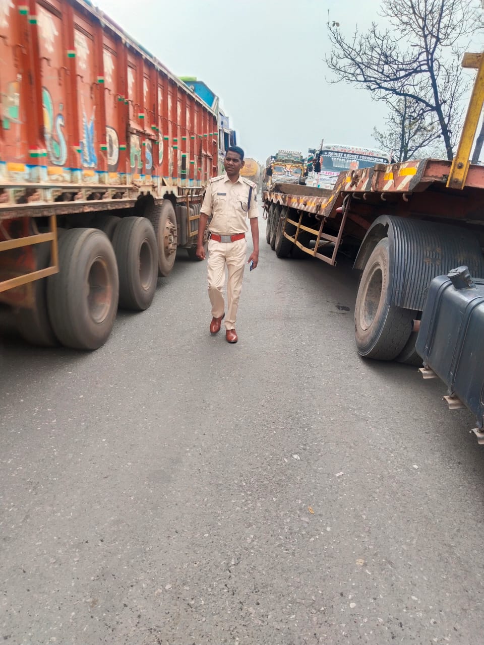 रायगढ़ । तमनार क्षेत्र में सड़क निर्माण होने से इन दिनों रायगढ़-पूंजीपथरा मार्ग पर भारी वाहनो का दबाव अधिक है । मंगलवार 19 मार्च को पूंजीपथरा मार्ग पर अव्यवस्थित भारी वाहनों से मार्ग बाधित थी । यातायात पुलिस के जवान यातायात व्यवस्था बनाने में जुटे थे । उसी समय यातायात डीएसपी रमेश चन्द्रा हमराह स्टाफ के साथ मौके पर पहुंचे । इस दरमियान मार्ग को बाधित कर सड़क पर वाहन खड़ी करने वाले 14 वाहन चालकों का चालान काटा गया जिसमें 14 वाहनों से 27,000 का समन शुल्क की वसूली की गई है । विदित हो कि सड़क सुरक्षा को लेकर पुलिस अधीक्षक दिव्यांग कुमार पटेल द्वारा यातायात नियमों का पालन ना करने वालों पर कार्रवाई के स्पष्ट निर्देश दिये गये है। इसी क्रम में कल 20 मार्च को थाना प्रभारी पूंजीपथरा निरीक्षक त्रिनाथ त्रिपाठी द्वारा ग्राम तराईमाल नलवा गेट के सामने लोक मार्ग बाधित कर खड़े वाहन ट्रेलर क्रमांक CG 13 L 1901 के चालक एवं जिंदल पार्क गेट के सामने सड़क पर ट्रेलर वाहन क्रमांक CG 10BP 9654 खड़ी करने वाले वाहन के चालक पर पृथक-पृथक धारा 283 आईपीसी के तहत अपराध पंजीबद्ध कर कार्रवाई किया गया है ।