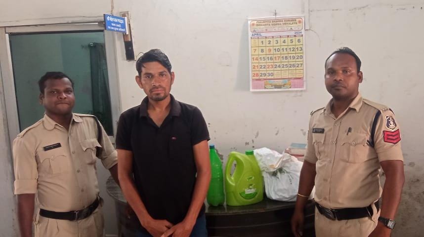 01 अप्रैल रायगढ़ । कल दिनांक 31/03/2024 को थाना प्रभारी जूटमिल निरीक्षक मोहन भारद्वाज के नेतृत्व में पुलिस टीम द्वारा अम्बेडकर नगर काशीराम चौक में शराब रेड कार्रवाई किया गया । थाना प्रभारी को मुखबीर से सूचना मिली थी कि अम्बेडकर नगर काशीराम चौक में रहने वाले केशव बंजारे उसके घर के पास पुराने कच्चे मकान में अवैध बिक्री करने भारी मात्रा में शराब रखा हुआ है । पुलिस टीम को रेड कार्रवाई में आरोपित केशव बंजारे पिता सुरेश कुमार बंजारे उम्र 39 साल निवासी अम्बेडकर नगर काशीराम चौक थाना जूटमिल रायगढ़ के कब्जे से एक प्लास्टिक जरिकेन और एक प्लास्टिक बोतल में रखा 7 लीटर महुआ तथा 200- 200 एम.एल. वाली 20 पाउच महुआ शराब *कुल शराब 11 बल्क लीटर कीमती करीबन 1,650 रूपये* का मिला जिसे गवाहों के समक्ष विधिवत जप्त किया गया है । आरोपी केशव बंजारे के कृत्य पर थाना जूटमिल में धारा 34(2),59(क) आबकारी एक्ट के तहत कार्रवाई किया गया है । शराब रेड कार्रवाई में थाना प्रभारी जूटमिल निरीक्षक मोहन भारद्वाज, प्रधान आरक्षक विरेन्द्र भगत, आरक्षक लखेश्वर पुरसेठ और शशिभूषण साहू शामिल थे ।