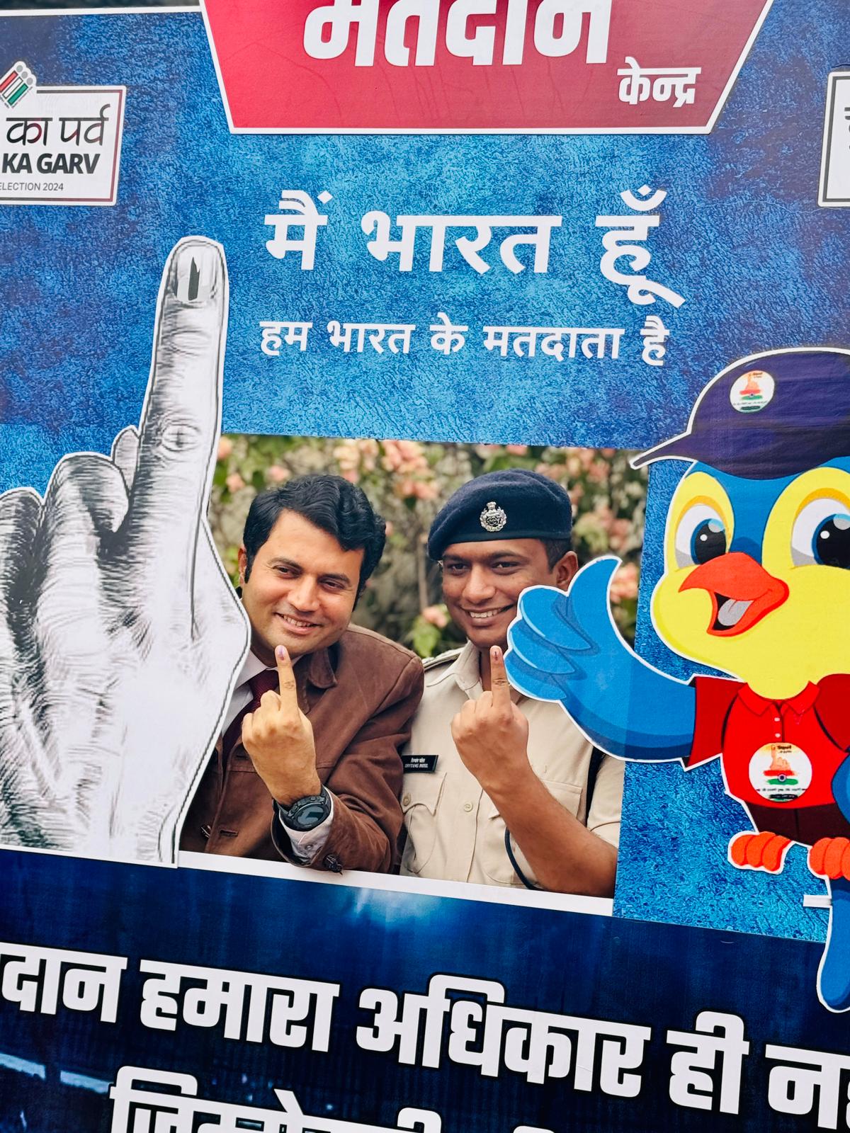 07 मई रायगढ़ । 18वीं लोकसभा चुनाव के तृतीय चरण की मतदान प्रक्रिया जारी है। रायगढ़ लोकसभा के लिये आज सुबह वोटिंग निर्धरित समय पर प्रारंभ हुआ । जिले के कलेक्टर कार्तिकेया गोयल एवं पुलिस अधीक्षक दिव्यांग कुमार पटेल ने सुबह बालमंदिर मतदान केन्द्र में सहज आम वोटर्स की तरह लाइन में खड़े होकर अपनी बारी का इंतजार कर मतदान किये जिसके बाद उन्होंने सेल्फी पाइंट में अमिट स्याही लगी तस्वीरें सोशल मीडिया में शेयर कर लोगों को घरों से निकलकर मतदान करने का संदेश दिया।