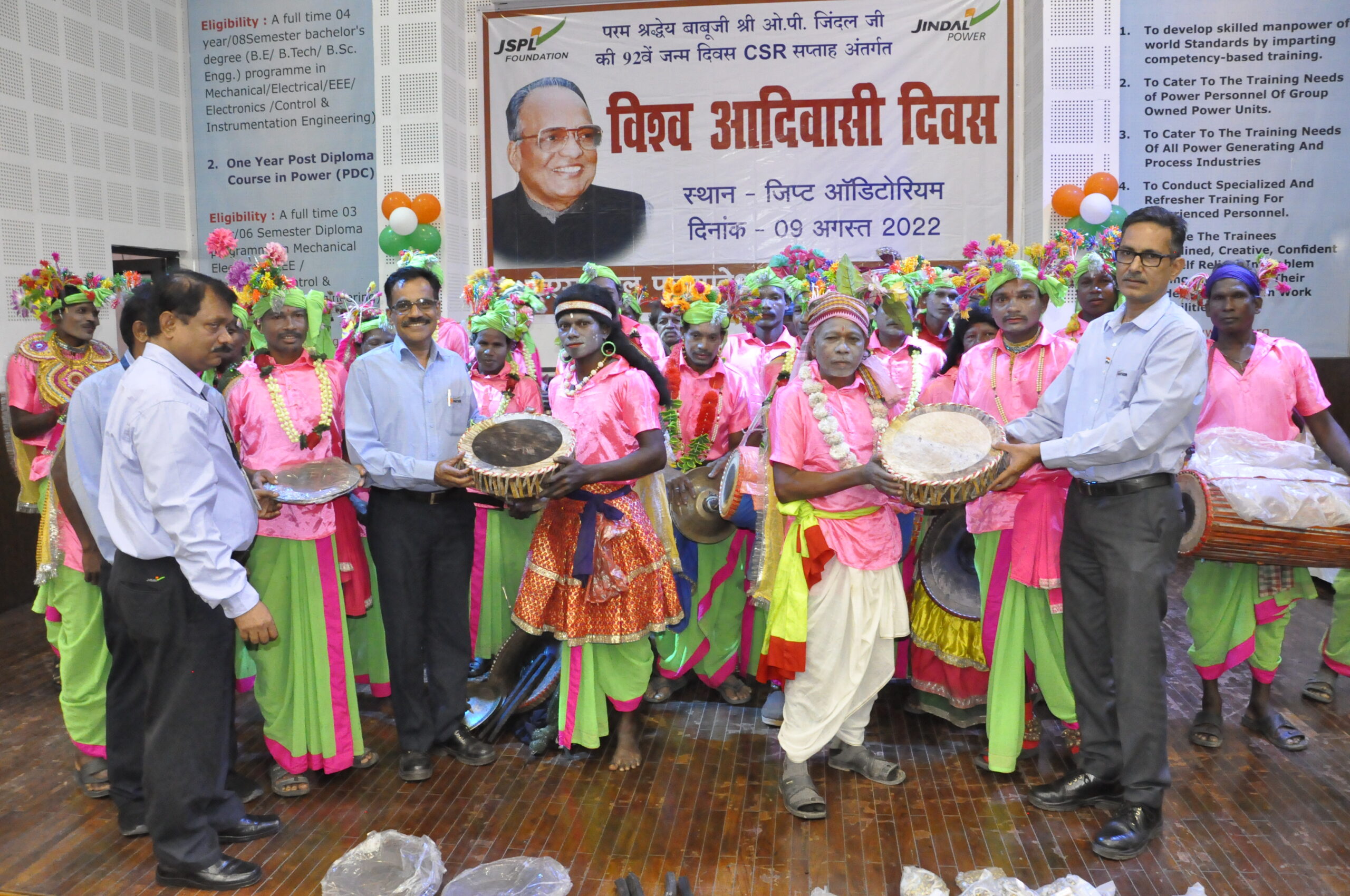 इस अवसर पर कार्यकम के मुख्य अतिथि मेजर जनरल गजेन्द्र प्रसाद (रि.) ने अपने सम्बोधन में कहा कि विश्व आदिवासी दिवस के अवसर पर क्षेत्रीय आदिवासी भाइयों के मध्य स्वयं को पाकर, इनके बेहतर सांस्कृतिक प्रस्तुती को देखना अपने आप में शानदार अनुभव है। उन्होनें कहा कि ऐसे कार्यक्रमों व लोकोपयोगी योजनाओं का संचालन आवश्यक है, जिससें कि इनकी परम्परा व संस्कृति का समुचित विकास सुनिश्चित किया जा सके। कार्यक्रम के अवसर पर भारी संख्या में कार्यरत कर्मचारी, जिप्ट के प्रशिक्षु विद्यार्थी एवं ठेका श्रमिक उपस्थित थे। कार्यक्रम के कुशल आयोजन में टीम सीएसआर जेपीएल का योगदान सराहनीय रहा। कार्यक्रम के दौरान मंच संचालन व आभार ज्ञापन प्रफुल्ल सतपथी ने किया।