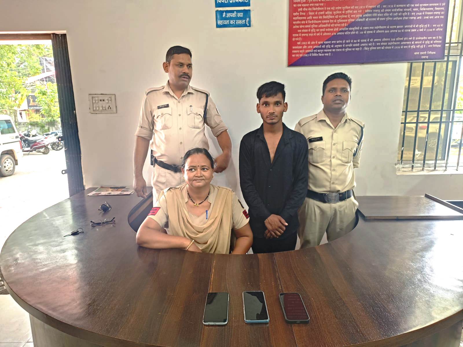 14 जून रायगढ़ । आज दिनांक 14/06/2024 को कोतवाली पुलिस द्वारा प्रतिबंधित एनीकट पंचधारी डेम के पास स्कूटी से मोबाइल चुराने वाले युवक को चोरी की मोबाइल बेचने ग्राहक तलाश करते समय पकड़ा गया है । मोबाइल चोरी को लेकर कल 13 जून को थाना कोतवाली में सिंचाई कॉलोनी लोचन नगर में रहने वाले करण मरावी (उम्र 19 साल) द्वारा आवेदन देकर रिपोर्ट दर्ज कराया कि 11 जून को अपने साथी अंकुर निषाद रूपेंद्र सिदार के साथ पंचधारी डेम नहाने गया था । तीनों ने अपने मोबाइल और पर्स को स्कूटी के डिक्की में रखकर नहाने गए वापस आकर देखे तो डिक्की तोड़कर कोई अज्ञात चोर डिक्की में रख दो पर्स और तीन मोबाइल को चोरी कर ले गया था । थाना कोतवाली में अज्ञात आरोपी पर अपराध क्रमांक 359/2024 धारा 379 आईपीसी के तहत अपराध कायम कर विवेचना में लिया गया था । पकड़े गये *आरोपी अमित नामदेव उर्फ राज पिता संजीव नामदेव उम्र 21 साल निवासी इंदिरा नगर इंदिरा मूर्ति के पास थाना कोतवाली रायगढ़* ने डिक्की तोड़कर मोबाइल और पर्स चोरी करना स्वीकार किया और बताया कि चोरी पर्स के पैसे निकाल कर पर्स को पानी में फेंक दिया है । आरोपी से 03 नग मोबाइल – आई फोन 14, सैमसंग एम 14 और vivo iQOO Z6 Lite कुल कीमती 80,000 रूपये का बरामद कर आरोपी अमित नामदेव को गिरफ्तार का न्यायिक रिमांड पर भेजा गया है । माल मुल्जिम पतासाजी की कार्यवाही में थाना प्रभारी कोतवाली निरीक्षक सुखनंदन पटेल, प्रधान आरक्षक अरुणा चौरसिया एवं हमराह स्टाफ की विशेष भूमिका रही है । पंचधारी डेम पास मोबाइल चुराने वाले आरोपियों पर लगातार पकडे जा रहे हैं । पूर्व में भी कोतवाली पुलिस द्वारा पंचधारी एनीकट के पास से मोबाइल चुराने वालों को गिरफ्तार कर रिमांड पर भेजा गया है।