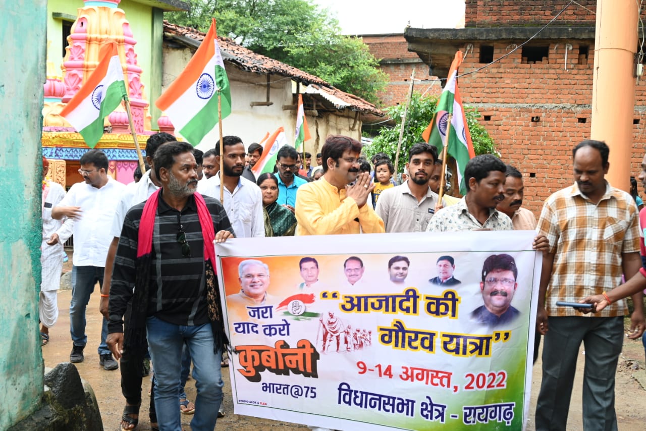 गौरतलब हो कि विधायक प्रकाश नायक के नेतृत्व में ग्राम पंचायत बोरीदा से तिरंगा यात्रा का शुभारम्भ गानक के जगन्नाथ मन्दिर में पूजा अर्चना कर की गई। जिसके पश्चात तिरंगा यात्रा ग्राम बॉरिदा से लुकापारा होते हुए भटली से होते हुए सरिया कांदुर पाली पहुंची।।वही ग्रामीणों में विधायक प्रकाश नायक को अपने मध्य पाकर उत्साह देखते ही बन रहा था। जहा विधायक के आगमन पर उनका भव्य स्वागत सत्कार फूल माला व गाजेबाजे के साथ किया गया। वही आयोजित तिरंगा यात्रा में गांव के बड़े बुजुर्गो, युवाओं सहित महिलाओं की बड़ी संख्या में सहभागिता रही।