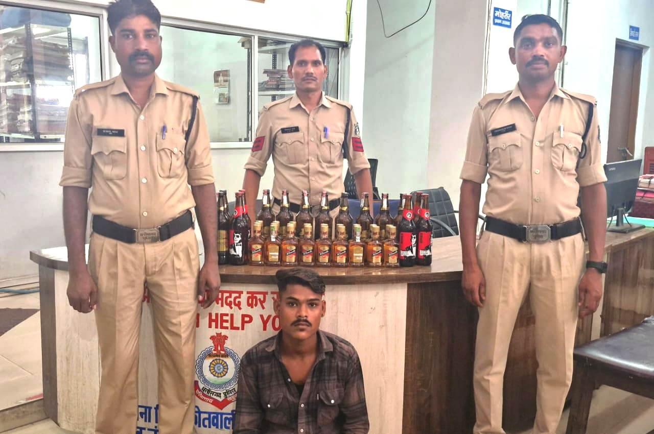 कोतवाली पुलिस ने अवैध बिक्री के लिए शराब परिवहन कर रहा युवक को पकड़ा, आरोपी से 13 बीयर और 20 पाव अंग्रेजी शराब जप्त…