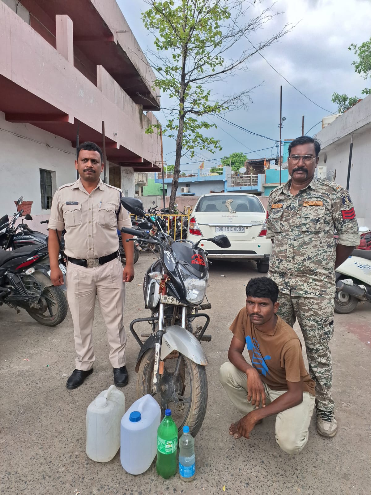 20 जून, रायगढ़ । आज दिनांक 20/06/2024 को थाना प्रभारी जूटमिल निरीक्षक मोहन भारद्वाज को मुखबिर से सूचना मिली कि एक व्यक्ति ग्लैमर मोटर सायकल पर महुआ शराब लेकर रायगढ़ से पुसौर की ओर अवैध बिक्री के लिए लेकर जा रहा है । थाना प्रभारी के निर्देशन पर तत्काल जूटमिल पुलिस पेट्रोलिंग द्वारा छातामुड़ा चौक के पास घेराबंदी कर मुखबिर द्वारा बताए ग्लैमर मोटरसाइकिल के चालक को पकड़ा गया । पूछताछ पर मोटर सायकल के चालक अपना नाम *गजानंद सारथी पिता हजारू सारथी उम्र 38 साल निवासी धनागर थाना कोतरारोड़* का रहने वाला बताया जिसके पास से 10 लीटर क्षमता वाले दो जरकिन तथा 02 लीटर वाली कोल्ड ड्रिंक और 01 लीटर वाले पानी बॉटल में भरा हुआ कुल 23 लीटर महुआ शराब बरामद हुआ । आरोपी गजानंद सारथी से अवैध *23 लीटर महुआ शराब कीमती ₹2300 और परिवहन में प्रयुक्त मोटरसाइकिल ग्लैमर सीजी 13 एडब्लू 9249 की जब्ती* की गई है । आरोपी के कृत्य पर थाना जूटमिल में अपराध क्रमांक 282/2024 धारा 34(2), 59(क) आबकारी एक्ट के तहत कार्यवाही किया गया है । शराब रेट कार्यवाही में प्रधान आरक्षक क्लोस्टिका खरे, रामनाथ बनर्जी तथा टाउन पेट्रोलिंग के आरक्षक लखेश्वर पुरसेठ, शशि भूषण साहू शामिल थे ।