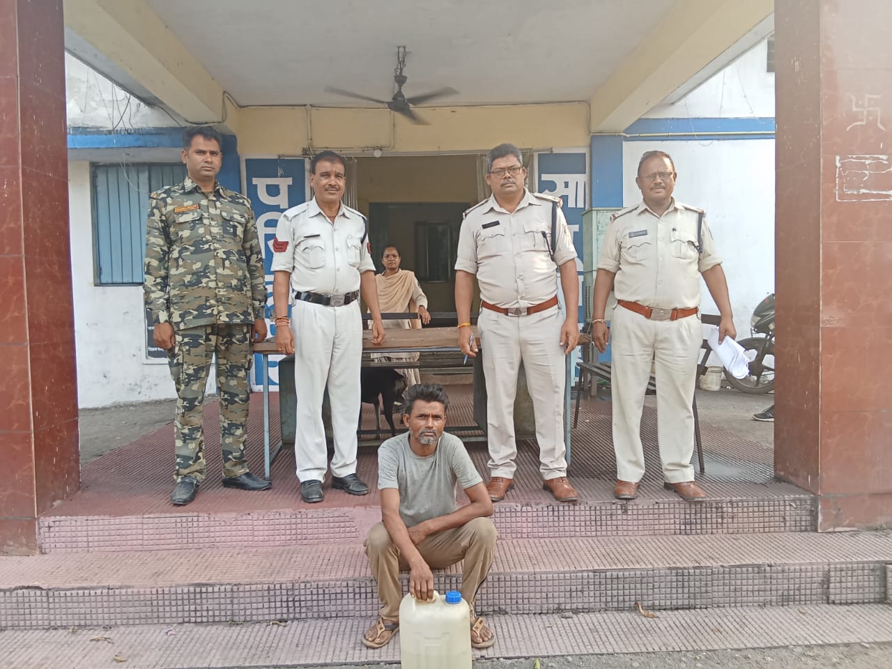 22 जून, रायगढ़ । पुलिस अधीक्षक दिव्यांग कुमार पटेल के दिशा-निर्देशन पर अवैध शराब की बिक्री पर अंकुश लगाने थाना प्रभारी पूंजीपथरा निरीक्षक राकेश मिश्रा द्वारा थाने स्टाफ को प्रत्येक गांव में मुखबीर लगाकर अवैध गतिविधियों की सूचनाएं लेने निर्देशित किया गया है । इसी कड़ी में कल थाना प्रभारी पूंजीपथरा को मुखबीर से तमनार चौंक पर स्थित ढाबे के पास अवैध रूप से महुआ शराब बिक्री की सूचना मिली । थाना प्रभारी के निर्देशन पर पूंजीपथरा स्टाफ द्वारा तमनार चौक पूंजीपथरा में घेराबंदी कर आरोपी गिरीराज सिंह पिता स्वर्गीय नृपत सिंह उम्र 45 वर्ष निवासी चमरावाला थाना नगीना जिला बिजनौर (उ0प्र0) हाल मुकाम पूंजीपथरा साहू होटल जिला रायगढ़ को 10 लीटर क्षमता वाली जरिकेन में रखा हुआ *07 बल्क लीटर महुआ शराब* के साथ पकड़ा गया है ।