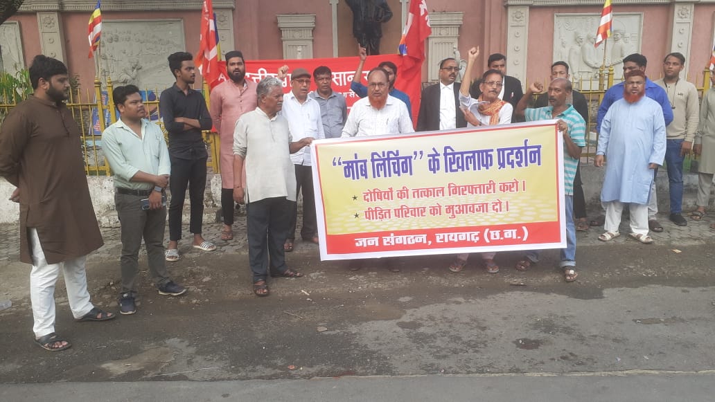 रायगढ़. / छत्तीसगढ़ के रायपुर जिले के आरंग थाना अंतर्गत गौ तस्करी के शक मे हुए मॉब लिंचिंग ने छत्तीसगढ़ के शांत,न्याय प्रिय जनता को झझकोर कर रख दिया है. दिनांक 6 -7 जून की दरमियानी रात में हुए इस घटना से 2 युवकों की मौके पर मौत हो गई. तीसरा युवक गंभीर रूप से घायल मौत जिंदगी की लड़ाई लड़ते लड़ते स्वर्ग सिधार गया. मॉब लिंचिंग करने वालों पर कार्यवाही एवं पीड़ित परिवार को मुआवजा देने की मांग को लेकर छत्तीसगढ़ के विभिन्न जिलों में विभिन्न संगठनों के द्वारा ज्ञापन दिया गया. ज्ञापन देने के बावजूद किसी पर भी कार्यवाही नहीं होने से न्याय में आस्था रखने वाले जनता, संगठन प्रदर्शन के लिए बाध्य हो रहे हैं. इसी कड़ी में विगत दिवस छत्तीसगढ़ किसान सभा रायगढ़ के द्वारा अंबेडकर प्रतिमा के पास सांकेतिक प्रदर्शन किया गया. सांकेतिक प्रदर्शन मे संयुक्त किसान मोर्चा, जिला बचाओ संघर्ष मोर्चा, भारतीय जन नाट्य संगठन (इप्टा ) अखिल भारतीय शांति एवं एकजुटता संगठन (एप्सों) एवं आम नागरिकों की भागीदारी रही. प्रदर्शन स्थल पर छत्तीसगढ़ किसान सभा के साथी लंबोदर साव, संयुक्त किसान मोर्चा के साथी मदन पटेल, जिला बचाओ संघर्ष मोर्चा के साथी शेख कलीमुल्लाह, इप्टा के साथी भरत निषाद एप्सों के साथी मोहम्मद साकिब एडवोकेट मुशर्रफ अली, साथी नित्यानंद साथी समय लाल साथी रासबिहारी खम्हारी, हाजी शेख अब्दुल्लाह साबरी ने अपने विचार रखें. वक्ताओं ने कहा कि शांति के टापू छत्तीसगढ़ में हुए इस घटना की कितनी निंदा की जाए कम है. घटना के 13 दिन बाद भी मोब लिंचींग के आरोपियों की गिरफ्तारी नहीं हुई होना छत्तीसगढ़ पुलिस प्रशासन की विफलता को साबित करती है. पुलिस प्रशासन ने एस आई टी का गठन किया लेकिन कार्यवाही कुछ भी नहीं की है . आरोपी आज भी खुले आम घूम रहे हैं. इससे समूचे छत्तीसगढ़ की जनता में आक्रोश है और वह प्रदर्शन के लिए बाध्य हो रहे हैं. दोषियों की गिरफ्तारी और पीड़ितों को मुआवजा देने की मांग को लेकर जमकर नारेबाजी की गई. प्रदर्शन के अंत में छत्तीसगढ़ किसान सभा के द्वारा मॉब लिंचिंग में लिप्त आरोपियों की तत्काल गिरफ्तारी, पीड़ित परिवार को एक करोड़ मुआवजा देने की मांग को लेकर राज्यपाल एवं मुख्यमंत्री के नाम तहसीलदार रायगढ़ श्री लोमेश मिरी को ज्ञापन दिया गया. ज्ञापन में अन्य संगठन के पदाधिकारीयों ने हस्ताक्षर करते हुए मांग का समर्थन किया. उक्त जानकारी किसान सभा के अध्यक्ष लंबोदर साव द्वारा दी गई.