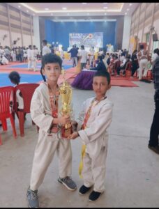 संस्कार स्कूल के मार्गदर्शक रामचंद्र शर्मा ने बताया कि शोतोकान कराते डू इंडियन एसोसिएशन ने 22 व 23 जून को बिलासपुर में ऑल इंडिया कराते चैंपियनशिप-2004 का आयोजन किया था, जिसमें छत्तीसगढ़ समेत उत्तरप्रदेश, दिल्ली, तेलंगाना, महाराष्ट्र, हरियाणा, पंजाब, ओडिशा के खिलाडिय़ों ने हिस्सा लिया। स्पर्धा में संस्कार स्कूल रायगढ़ के बच्चे भी अपने कोच के साथ शामिल हुए और अपने खेल कौशल का प्रदर्शन किया। इस चैंपियनशिप में संस्कार स्कूल के बच्चों ने अलग-अलग कैटेगरी में पांच गोल्ड मैडल पर कब्जा किया। इसमें संस्कार स्कूल के कक्षा तीसरी के छात्र शेख हमादुल्लाह ने काता व कुमिते दोनों में गोल्ड मैडल जीते। कक्षा पहली की छात्रा प्रकृति मानिकपुरी ने काता में गोल्ड मैडल हासिल किया। इसी तरह कक्षा 10वीं के छात्र शाश्वत दुबे ने कुमिते में गोल्ड मैडल जीता। इस आयोजन में केंद्रीय राज्यमंत्री तोखन साहू भी पहुंचे और खिलाडिय़ों को पुरस्कृत कर उनका उत्साहवर्धन किया।