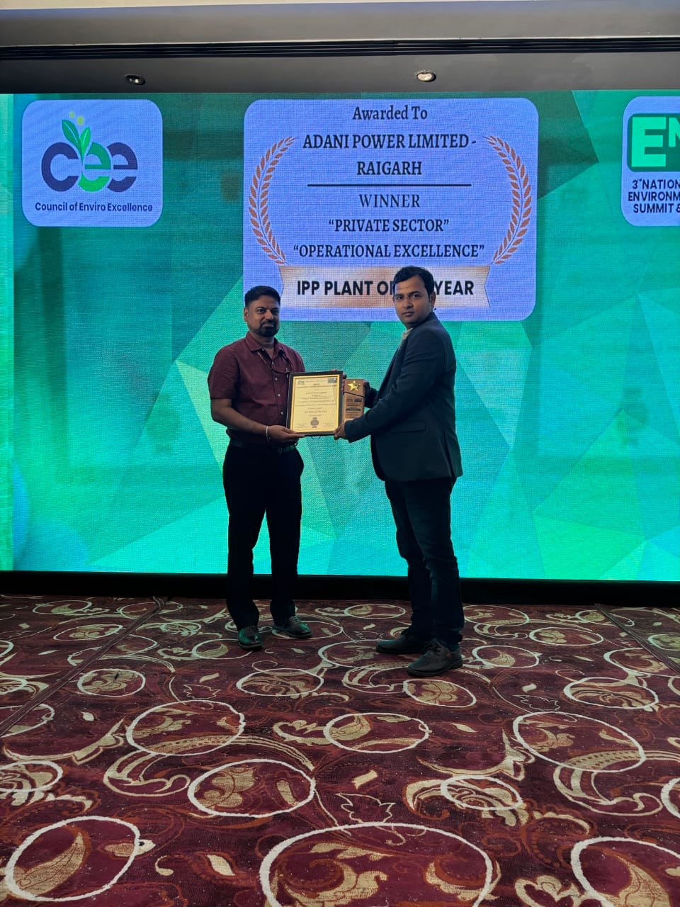 रायगढ़; 2 जुलाई 2024: जिले के पुसौर ब्लॉक में अदाणी पॉवर लिमिटेड, बड़े भंडार को पर्यावरण संरक्षण में किये गए अनुकरणीय पहल एवं कार्यों के लिए पर्यावरण उत्कृष्टता परिषद (सीईई) द्वारा तीसरे राष्ट्रीय विद्युत जनपर्यावरण उत्कृष्टता पुरस्कार 2024 में दो प्रतिष्ठित पुरस्कारों से सम्मानित किया गया हैं। अदाणी पॉवर लिमिटेड, रायगढ़ को यह सम्मान, निजी क्षेत्र में 500 मेगावाट से ऊपर के कोयले की स्वतंत्र विद्युत संयंत्र (आईपीपी) श्रेणी में सर्वश्रेष्ठ पर्यावरण उत्कृष्टता हासिल के लिए मिला है। नई दिल्ली में दिनांक 26 और 27 जून 2024 को आयोजित एक समारोह के दौरान यह पुरस्कार पर्यावरण उत्कृष्टता परिषद के सलाहकार बोर्ड में कार्यरत व भारतीय अक्षय ऊर्जा विकास एजेंसी(आईआरडीई) के परियोजना निदेशक और केन्द्रीय विद्युत प्राधिकरण (सीईए) के पूर्व अध्यक्ष पंकज बत्रा द्वारा प्रदान किये गए। अदाणी पॉवर लिमिटेड, रायगढ़ की ओर से पर्यावरण विभाग प्रमुख अरिंदम राउत ने इन प्रतिष्ठित पुरस्कारों को ग्रहण किया।