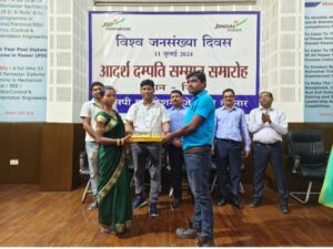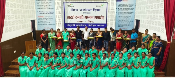 इस अवसर पर जेपीएल संयंत्र निकटस्थ विभिन्न ग्रामों के 15 जोड़े आदर्श व जिम्मेदार दंपत्तियों, जिनका विवाह 18 वर्ष व 21 वर्ष के बाद हुआ हो तथा पहली संतान के दो वर्ष के बाद व दूसरा बच्चा पहले बच्चें के तीन वर्ष के बाद हुआ हो तथा ऐसे माता अथवा पिता जिन्होंने एक या दो बच्चे के बाद नसबंदी करा ली हो का चयन कर उन्हें सम्मानित किया गया। कार्यक्रम में विभिन्न ग्रामों से आये महिला, पुरूष, स्वास्थ्य कार्यकर्त्ता, जेएसपीएल फाउण्डेशन द्वारा संचालित वात्सल्य परियोजना के स्वास्थ्य संगिनियॉ व ग्राम प्रेरक उपस्थित थे। कार्यक्रम के दौरान सफल मंच संचालन व धन्यवाद ज्ञापन नीतू सारस्वत ने किया।