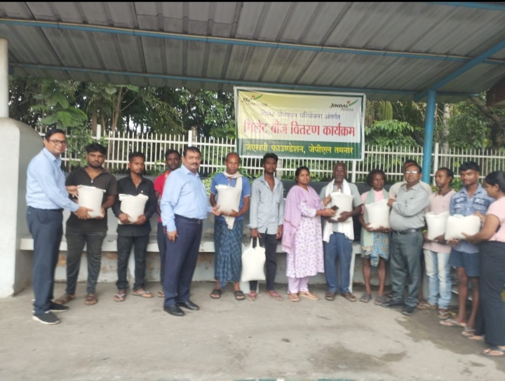 तमनार-जेएसपी फाउण्डेशन, जेपीएल तमनार अपने निगमित सामाजिक उत्तरदायित्व निर्वहन के अंतर्गत क्षेत्रीय किसान भाईयों के सामाजिक एवं आर्थिक विकास सुनिश्चित करने एवं उनको खेती की आधुनिकतम एवं विकसित पद्धतियों से अवगत कराने के लिए सदैव प्रतिबद्ध रही है। इसी क्रम में तमनारांचल के 300 किसान भाईयों को धान की उन्नत खेती ैत्प् तकनीक से अवगत कराने हुए उन्हें धान बीज वितरित किया गया साथ मिलेट प्रोत्साहन परियोजना अंतर्गत 30 किसानों को कोदो, कुटकी, रागी व ज्वार के बीज उपलब्ध कराये गये।