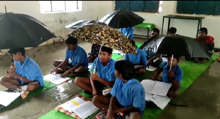 111 बच्चों की दर्ज संख्या वाले इस स्कूल में इकलौता शिक्षक है. यंहा बारिश के समय बच्चों को छाता लेकर पढ़ाई करनी पड़ती है.