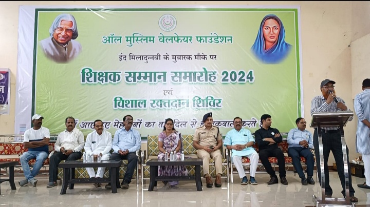 ऑल मुस्लिम वेलफेयर फाउंडेशन ने ईद मिलादुन्नबी के मौके पर विशाल रक्तदान शिविर एवं शिक्षक सम्मान समारोह मनाया गया..