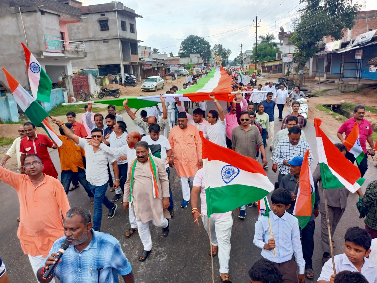 आजादी के 75 वें अमृत महोत्सव कार्यक्रम के तारतम्य में आज कुरकुरी में सर्व समाज के वरिष्ठ पदाधिकारियों की उपस्थिति में विशाल तिरंगा यात्रा का गरिमामय आयोजन किया गया.