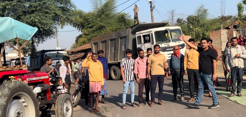 इस सड़क पर भारी वाहन का आवागमन पर तुरंत रोक लगाये अन्यथा एक हफ़्ते पश्चात हमारे द्वारा आर्थिक नाकेबंदी की जाएगी जिसकी ज़िम्मेदारी शासन प्रशासन की होगी ।।
