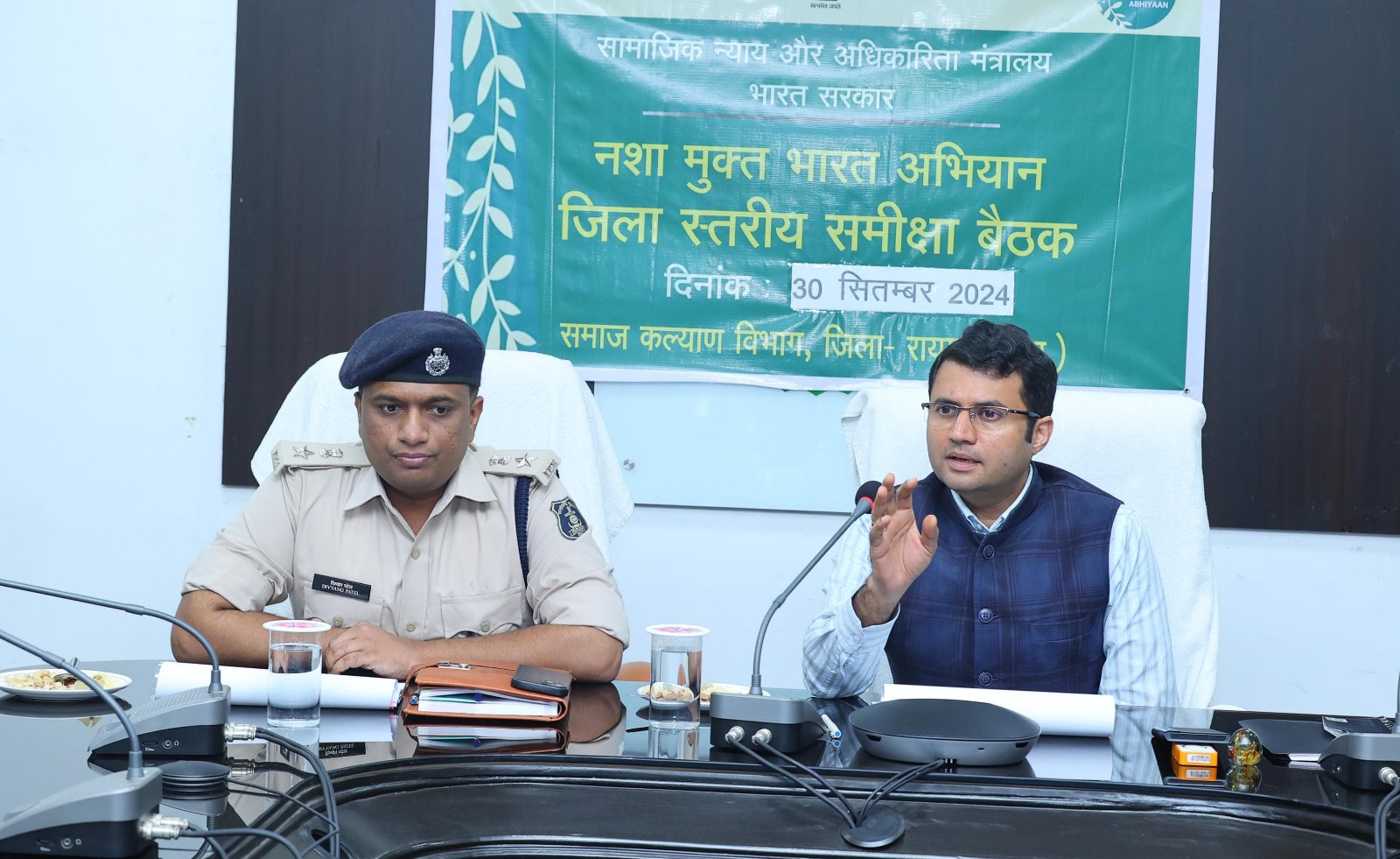 रायगढ़, 30 सितम्बर 2024/ कलेक्टर कार्तिकेया गोयल के अध्यक्षता में सामाजिक न्याय और अधिकारिता मंत्रालय द्वारा संचालित नशा मुक्त भारत अभियान की जिला स्तरीय समिति गठित होने के पश्चात आज पहली बैठक आयोजित हुई। अभियान का उद्देश्य मादक द्रव्यों के सेवन की समस्या से निपटने के लिए पहल किया जा रहा है। जिसके तहत समाज को नशा मुक्त बनाने की दिशा में जागरूकता कार्यक्रम, परामर्श सेवाओं और क्षमता निर्माण को शामिल किया जा रहा है। इस अवसर पर पुलिस अधीक्षक दिव्यांग पटेल भी उपस्थित रहे।