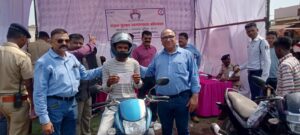 – चालानियों को बाँटे निःशुल्क हेलमेट, यातायात पुलिस के साथ वाहन चालकों की सुरक्षा का प्रयास